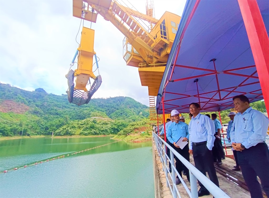 ထို့နောက် ပြည်ထောင်စုဝန်ကြီးနှင့်အဖွဲ့သည် နန်ချိုရေအားလျှပ်စစ်ဓာတ်အားပေး စက်ရုံ၏ ရေထိန်းတမံနှင့် ရေယူအဆောက်အအုံသို့ ရောက်ရှိပြီး ရေဝင်ရောက်မှု၊ ရေသိုလှောင်ထားရှိမှု၊ ရေထိန်းကန်အတွင်း ရေဝင်ရောက်မှုအခြေအနေများနှင့် ဓာတ်အားပေးစက်ရုံသို့ ဖိအားမြင့် သံမဏိပိုက်လိုင်းဖြင့် ရေပို့လွှတ်မှုအခြေအနေတို့ကို ကြည့်ရှုစစ်ဆေးသည်။