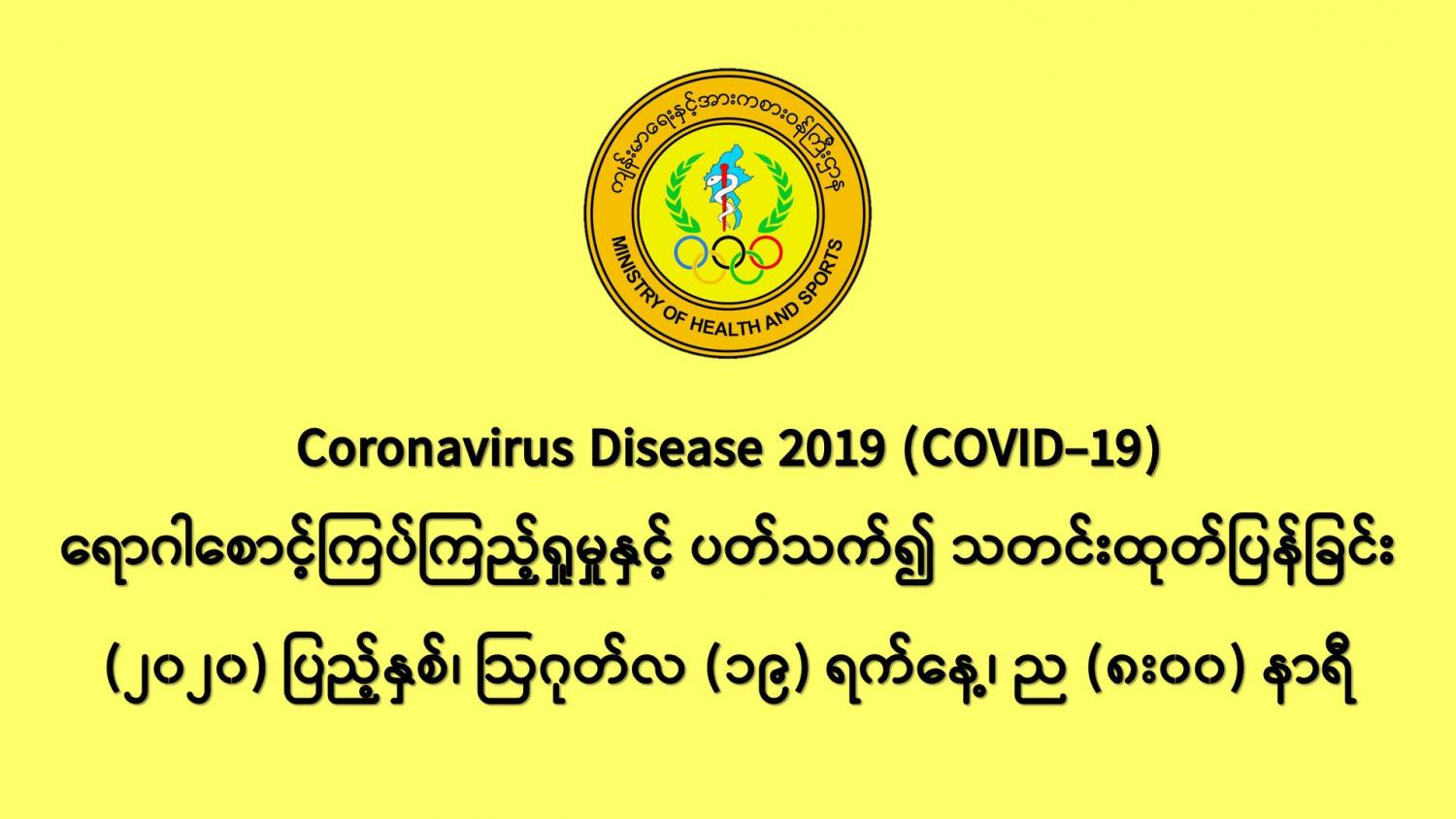 ၃။ ဓာတ်ခွဲအတည်ပြု လူနာဟောင်း (old confirmed case) များ၏ ဓာတ်ခွဲနမူနာစစ်ဆေးမှု တွင် (၂) ကြိမ်ဆက်တိုက် ပိုးမတွေ့ရှိသူ (၂) ဦး (Case-311 နှင့် 321) ရှိသဖြင့် ယနေ့အထိ COVID-19 ရောဂါပိုးကင်းစင်လာသူ စုစုပေါင်း (၃၃၃) ဦးရှိပါသည်။ ၎င်းတို့အနက် (၃၂၉) ဦးအား ဆေးရုံမှဆင်းခွင့်ပြုခဲ့ပြီးဖြစ်ကာ သတ်မှတ်နေရာများတွင် အသွား အလာဆက်လက်ကန့်သတ်၍ စောင့်ကြပ်ကြည့်ရှုလျက်ရှိပါသည်။
