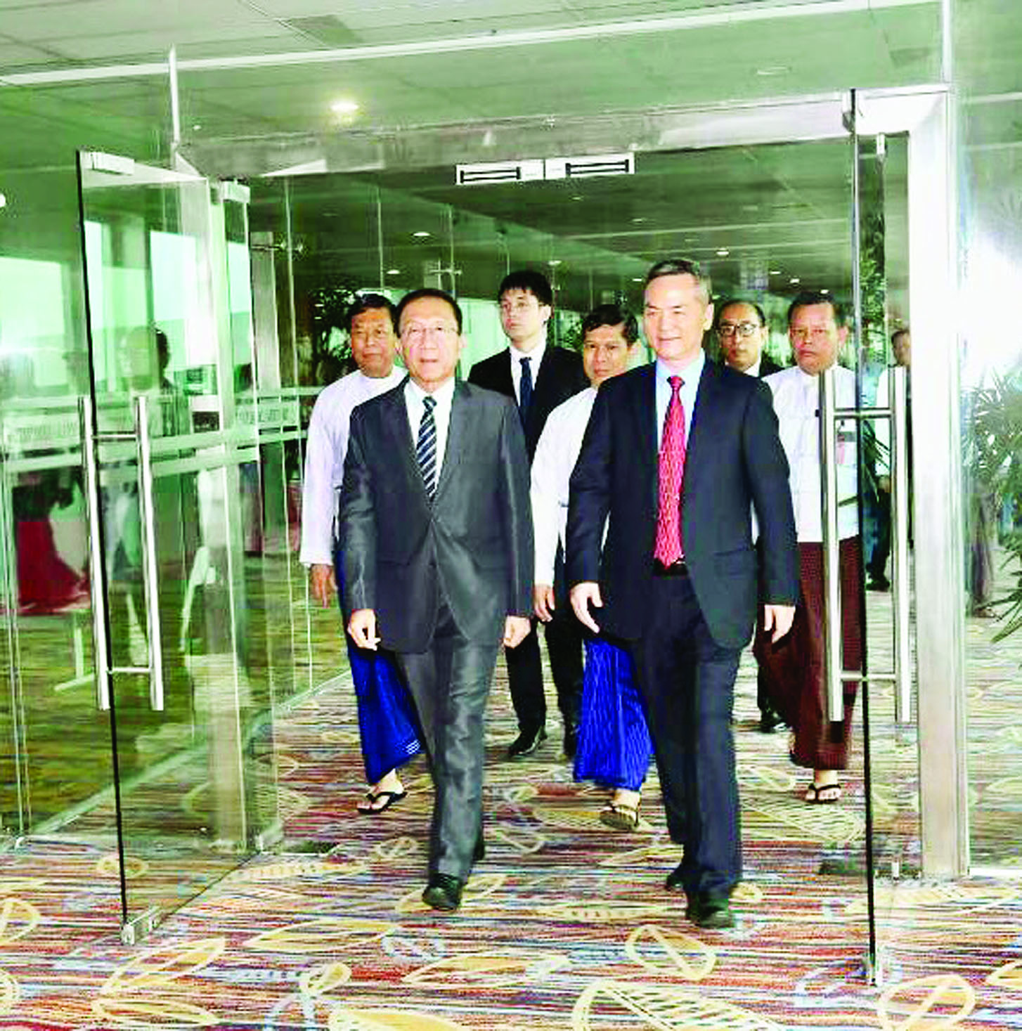 မြန်မာကိုယ်စားလှယ်အဖွဲ့အား မြန်မာနိုင်ငံဆိုင်ရာတရုတနိုင်ငံသံရုံးမှ စီးပွားရေးကောင်စစ်ဝန် Mr. Quyang Daobing နှင့် စီမံကိန်းနှင့်ဘဏ္ဍာရေးဝန်ကြီးဌာနအောက်ရှိ ဦးစီးဌာနများမှဌာနအကြီးအကဲများက ရန်ကုန်ပြည်ပြည်ဆိုင်ရာလေဆိပ်၌ ပို့ဆောင်နှုတ်ဆက်ကြသည်။
