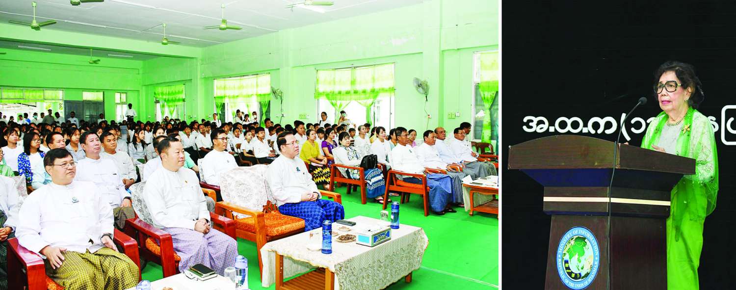 ယင်းနောက် ပြည်ထောင်စုဝန်ကြီးဦးမောင်မောင်အုန်းက နှုတ်ခွန်းဆက်စကားပြောကြားရာတွင် ကျောင်းသားကျောင်းသူများ မှန်ကန်သည့်အသိပညာများ ရရှိစေရေးအတွက် ယနေ့စာပေဟောပြောပွဲကို ကျင်းပရခြင်းဖြစ်ကြောင်း၊ ဆရာမကြီးဒေါ်မေကျော့ရှင်း၏ ဟောပြောဆွေးနွေးချက်များကို စိတ်ဝင်စားစွာ နားထောင်မှတ်သားစေလိုကြောင်း၊ ကျောင်းသားကျောင်းသူများအနေဖြင့် မိမိကိုယ်မိမိယုံကြည်မှုနှင့် ရဲရင့်မှုရှိရန် လိုအပ်ကြောင်း။