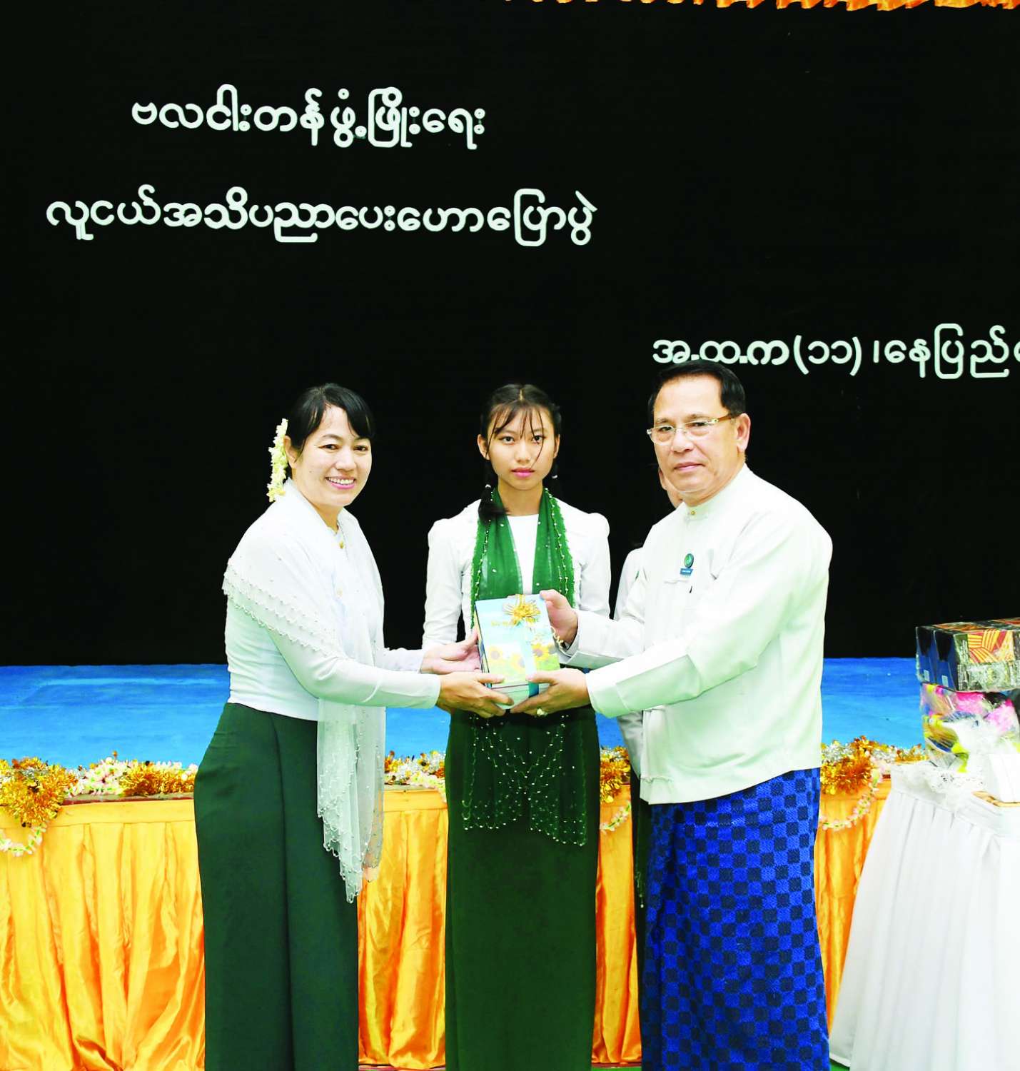 ထို့နောက် ပြည်ထောင်စုဝန်ကြီးဦးမောင်မောင်အုန်းက အားကစားမောင်မယ်များအား ငွေကျပ်ငါးသိန်း ပေးအပ်ချီးမြှင့်သည်။