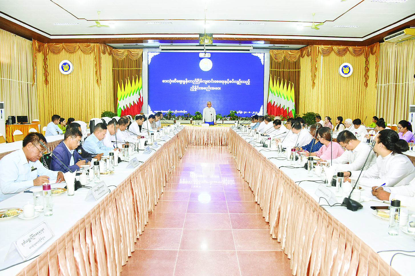 ပြည်တွင်းစားသုံးဆီဈေးနှုန်း တည်ငြိမ်ကျဆင်းစေရေး ညှိနှိုင်းအစည်းအဝေးကို ယနေ့နံနက်ပိုင်းတွင် စီးပွားရေးနှင့်ကူးသန်းရောင်းဝယ်ရေးဝန်ကြီးဌာန ရုံးအမှတ် (၃) အစည်းအဝေးခန်းမ (၂) ၌ ကျင်းပရာ စီးပွားရေးနှင့် ကူးသန်းရောင်းဝယ်ရေးဝန်ကြီးဌာန ပြည်ထောင်စုဝန်ကြီး ဦးအောင်နိုင်ဦး တက်ရောက်အမှာစကား ပြောကြားသည်။