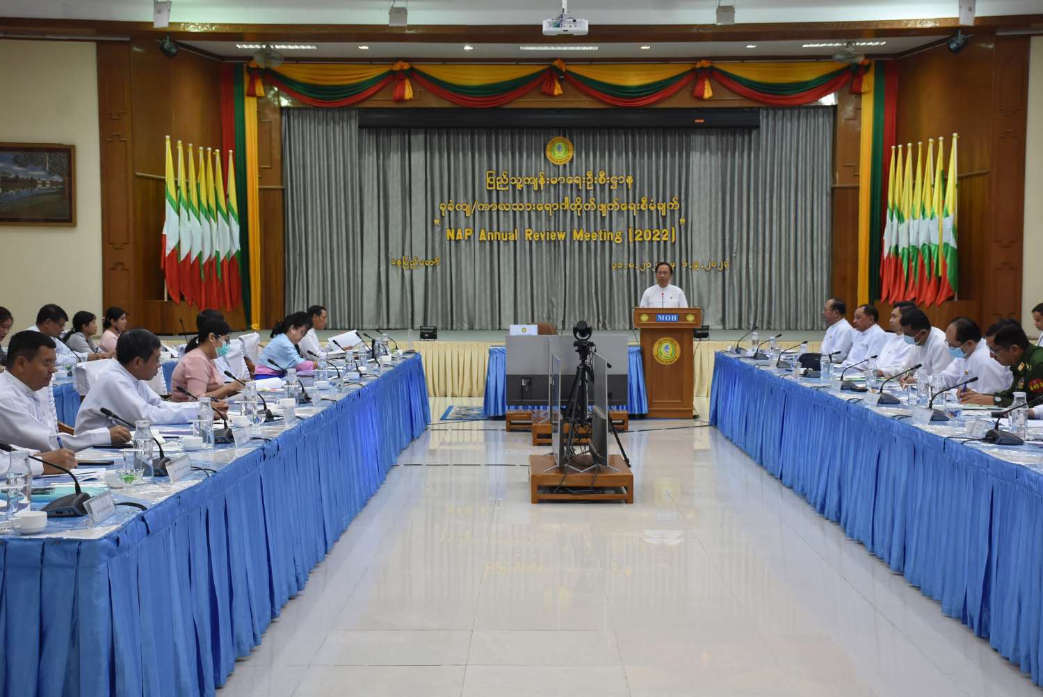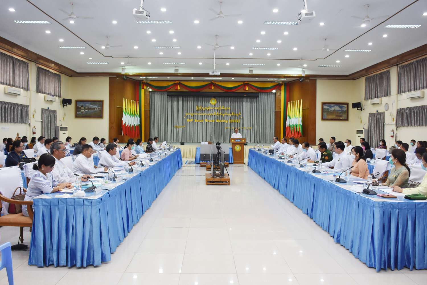 ခုခံကျ/ကာလသားရောဂါတိုက်ဖျက်ရေးစီမံချက်၏ နှစ်ပတ်လည်လုပ်ငန်း ဆန်းစစ်ဆွေးနွေးပွဲ(၂၀၂၂) ဖွင့်ပွဲအခမ်းအနားကို ယနေ့နံနက်ပိုင်းတွင် ကျန်းမာရေးဝန်ကြီးဌာန၌ ကျင်းပရာ ကျန်းမာရေးဝန်ကြီးဌာန ပြည်ထောင်စုဝန်ကြီး ပါမောက္ခဒေါက်တာသက်ခိုင်ဝင်း တက်ရောက်အမှာစကားပြောကြားသည်။