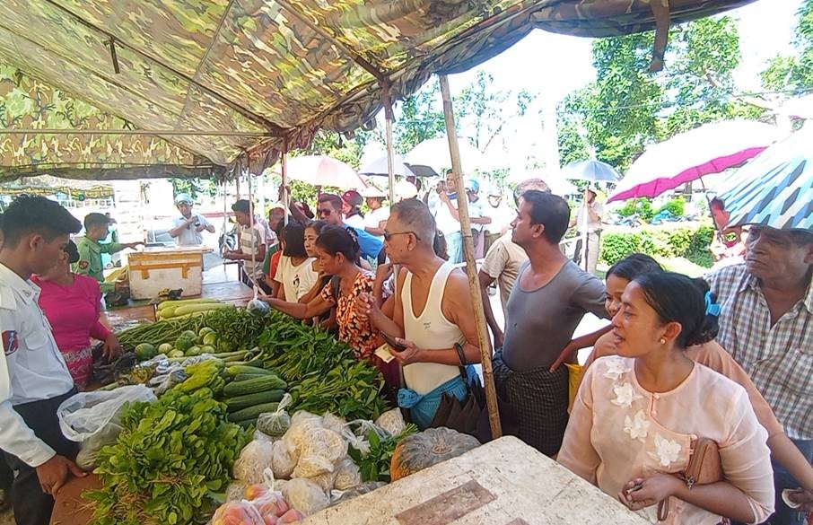 ယနေ့တွင်လည်း စစ်တွေမြို့၊ ဦးဥတ္တမပန်းခြံ၌ အခြေခံစားသောက်ကုန်များဖြစ်သည့် ဆန်၊ ဆီ၊ ဆား၊ အသား/ ငါး၊ ကြက်ဥ၊ ဘဲဥ၊ နို့ထွက်ပစ္စည်းများ၊ ဟင်းသီးဟင်းရွက်များ၊ ကြက်သွန်နီ၊ ကြက်သွန်ဖြူများကိုလည်းကောင်း၊ တပ်မတော်စက်ရုံများနှင့် မြန်မာစီးပွားရေးကော်ပိုရေးရှင်းတို့မှ ထုတ်လုပ်သည့် ခေါက်ဆွဲခြောက်၊ ဘီစကွတ်နှင့် စည်သွပ်ဘူးများဖြစ်သည့် အမဲသားဘူး၊ မျှစ် စားတော်ပဲဘူး၊ ကြက်သားအာလူးဘူး၊ ငါးတန်အချိုပေါင်းဘူး၊ ငါးသလောက်ဘူး၊ ငပိကြော်ဘူး၊ ပဲထောပတ်ဘူး၊ ပဲခရမ်းဘူး၊ သရက်သီးသနပ်ဘူးစသည့် စားသောက်ကုန်များကိုလည်းကောင်း၊ မြန်မာ့စီးပွားရေးဦးပိုင်အများနှင့် သက်ဆိုင်သောကုမ္ပဏီ လီမိတက် အရောင်းဆိုင်များ၏ စားသောက်ကုန်ပစ္စည်းများ၊ လျှပ်စစ်ပစ္စည်းများနှင့် အိမ်ဆောက်ပစ္စည်းများကိုလည်းကောင်း၊ ပြင်ပပေါက်ဈေးထက်သက်သာသောဈေးနှုန်းများဖြင့် ဆက်လက်ရောင်းချပေးရာ ဒေသခံပြည်သူများနှင့် ဌာနဆိုင်ရာဝန်ထမ်းမိသားစုများက ဝမ်းသာအားရဝယ်ယူအားပေးကြကြောင်းနှင့် ယခုကဲ့သို့စားရေးအခက်အခဲဖြစ်ပေါ်နေချိန်တွင် သက်သာသောဈေးနှုန်းများဖြင့် ရောင်းချပေးမှုအပေါ် တာဝန်ရှိသူများအား အထူးပင်ကျေးဇူးတင်ရှိကြောင်း သတင်းရရှိသည်။