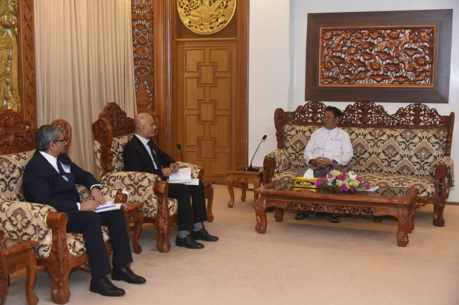 ဒုတိယဝန်ကြီးချုပ်နှင့် နိုင်ငံခြားရေးဝန်ကြီးဌာန၊ ပြည်ထောင်စုဝန်ကြီး ဦးသန်းဆွေသည် ကုလသမဂ္ဂလူသားချင်းစာနာထောက်ထားမှုဆိုင်ရာ ညှိနှိုင်းရေးရုံး(UNOCHA)၏ မြန်မာနိုင်ငံဆိုင်ရာအကြီးအကဲ Mr. Sajjad Mohammad Sajid အား ၂၀၂၃ ခုနှစ်၊ စက်တင်ဘာလ ၅ ရက်၊ ၁၀:၃၀ နာရီတွင် နေပြည်တော်ရှိ နိုင်ငံခြားရေးဝန်ကြီးဌာန၌ လက်ခံတွေ့ဆုံခဲ့ပါသည်။ တွေ့ဆုံရာတွင် ကုလသမဂ္ဂယာယီဌာနေညှိနှိုင်းရေးမှူးနှင့် လူသားချင်းစာနာထောက်ထားမှုဆိုင်ရာ ယာယီညှိနှိုင်းရေးမှူး Mr. Ramanathan Balakrishnan လည်း ပါဝင်တက်ရောက် ဆွေးနွေးခဲ့ပါသည်။