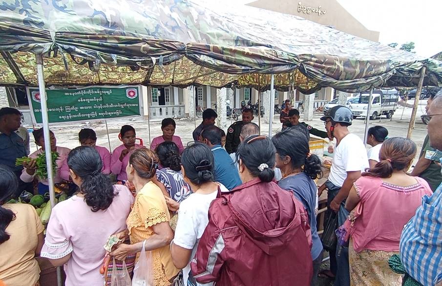 ဆိုင်ကလုန်းမုန်တိုင်း (မိုခါ) တိုက်ခတ်မှုကြောင့် မုန်တိုင်းဒဏ်သင့် ဒေသခံပြည်သူများနှင့် ဌာနဆိုင်ရာဝန်ထမ်းများ၏ စားသောက်ရေးအဆင်ပြေစေရန်နှင့် မိမိတို့အလိုရှိရာ စားသောက်ကုန်ပစ္စည်းများကို ဈေးနှုန်းသက်သာစွာဖြင့် ဝယ်ယူစားသောက်နိုင်ရေးအတွက် အနောက်ပိုင်းတိုင်းစစ်ဌာနချုပ်၊ နယ်မြေခံတပ်မတော်သားများနှင့် တာဝန်ရှိသူများက နေ့စဉ်ရောင်းချပေးလျက်ရှိသည်။