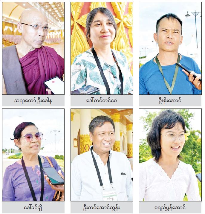ကျွန်မက စစ်ကိုင်းတိုင်းဒေသကြီး ကသာမြို့ကပါ။ သူငယ်ချင်းတွေစုပြီး လာရောက်ဖူးမြော်တာပါ။ ဘုရားကြီးကို ရုပ်မြင်သံကြားမှာပဲ ဖူးမြော်ဖူးတယ်။ ဖူးချင်စိတ်လည်း ဖြစ်နေတာ။ အဲဒီတော့ အားမလိုအားမရ ဖြစ်ရတယ်။ ဒါကြောင့် ကိုယ်တိုင်ကိုယ်ကျ လာရောက်ဖူးမြော်တာ။ ကိုယ်တိုင်လက်တွေ့ ဖူးမြော်ရတော့ စိတ်ထဲမှာ ကြည်နူးမှုလည်းဖြစ်တယ်။ ဝမ်းလည်းသာရတယ်။ ကျေနပ်ပီတိလည်း ဖြစ်ရတယ်။ ပြီးတော့ ဒီဘုရားကြီးဖြစ်မြောက်အောင်တည်ဖို့နဲ့ သာသနိကအဆောက်အအုံတွေ တည်ဆောက်ဖို့အတွက် ဗိသုကာပညာရှင်တွေ၊ အသိပညာရှင်တွေ၊ အတတ်ပညာရှင်တွေအားလုံးဟာ မြန်မာနိုင်ငံသားတွေချည်းပဲလို့ သိရတယ်။ အဲဒီအတွက်လည်း ကိုယ့်နိုင်ငံမှာ ဒီလိုပညာရှင်တွေ အမြောက်အမြားရှိပါလားဆိုပြီး အားရကျေနပ်မိပါတယ်။ ဂုဏ်လည်းဂုဏ်ယူမိပါတယ်။ နောက်တော့ ဘုရားကြီးမတည်ခင် စကျင်ကျောက်တုံးကြီးတွေ အဆင့်ဆင့် သယ်ယူတာနဲ့ပတ်သက်လို့လည်း ရုပ်မြင်သံကြားမှာ တစိုက်မတ်မတ် ကြည့်ရှု၊ အားပေး၊ ဖူးမြော်ခဲ့ရတယ်။ အဲဒီကတည်းက ဘုရားကြီးတည်ပြီးသွားရင် သွားဖူးဖြစ်အောင်ဖူးမယ်လို့ သန္နိဋ္ဌာန်ချပြီးသားပါ။ ဘုရားကြီးကို ဖူးမြော်ခွင့်ရတဲ့အတွက် သက်ဆိုင်သူအားလုံးကို ကျေးဇူးတင်ပါတယ်။