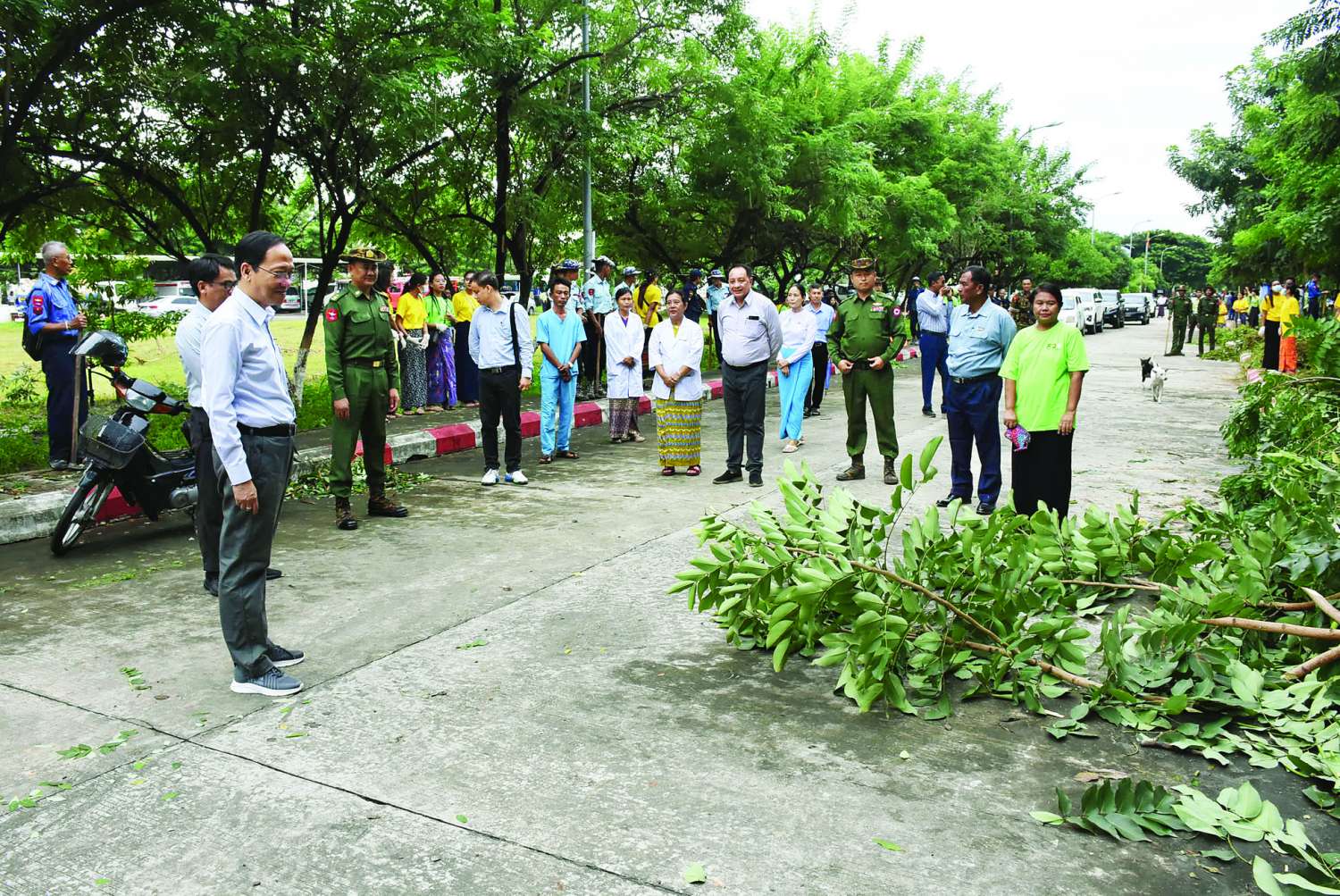 ဦးစွာ ပြည်ထောင်စုဝန်ကြီးနှင့် နေပြည်တော်ကောင်စီဥက္ကဋ္ဌ ဦးသန်းထွန်းဦးတို့သည် တာဝန်ရှိသူများနှင့်အတူ နံနက် ၇ နာရီခွဲတွင် ပြည်ထောင်စုနယ်မြေ နေပြည်တော်ရှိ နေပြည်တော် ပြည်သူ့ဆေးရုံကြီး(ခုတင်-၁၀၀၀)သို့ ရောက်ရှိရာ ဆေးရုံအုပ်ကြီး ပါမောက္ခဒေါက်တာရဲမြင့်နှင့် တာဝန်ရှိသူများက အုပ်ချုပ်မှုဆောင်၌ ဆေးရုံကြီး သန့်ရှင်းရေးလုပ်ငန်းများဆောင်ရွက်ရန် စီစဉ်ထားရှိမှုကိုတင်ပြကြပြီး ပြည်ထောင်စုဝန်ကြီးနှင့် နေပြည်တော်ကောင်စီဥက္ကဋ္ဌတို့က လိုအပ်သည်များ ဖြည့်စွက်မှာကြားကာ ဆေးရုံကြီးအတွင်း၊ အပြင် စုပေါင်းသန့်ရှင်းရေးဆောင်ရွက်နေမှုများကို လှည့်လည်ကြည့်ရှုအားပေးသည်။