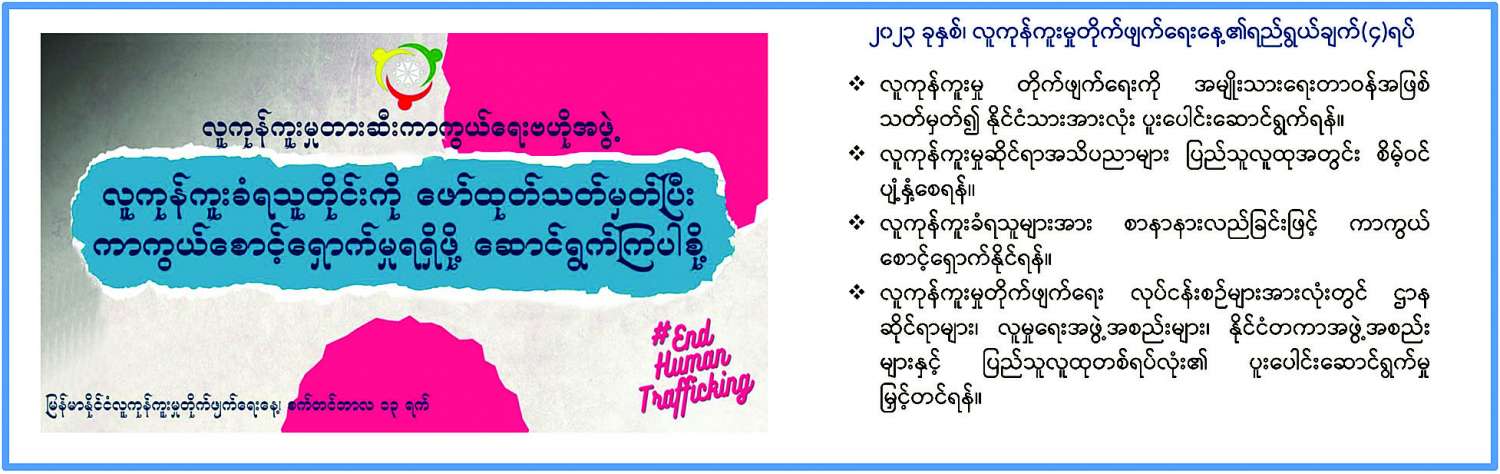 ၂၀၂၃ ခုနှစ်၊ လူကုန်ကူးမှု တိုက်ဖျက်ရေးရေးနေ့၏ ရည်ရွယ်ချက်(၄)ရပ်