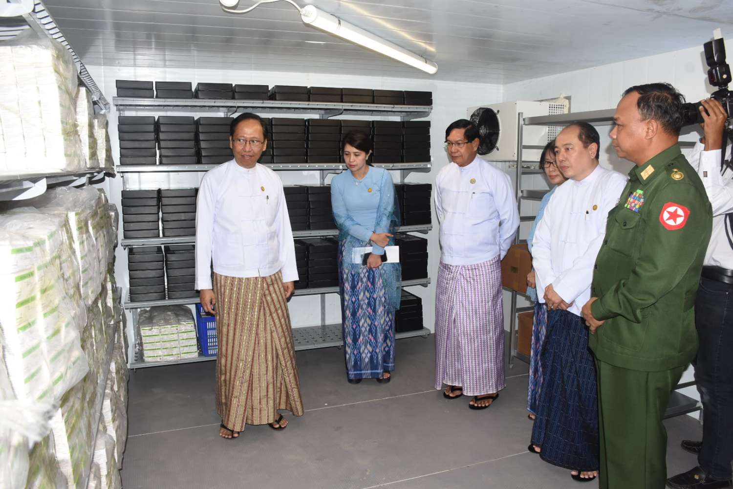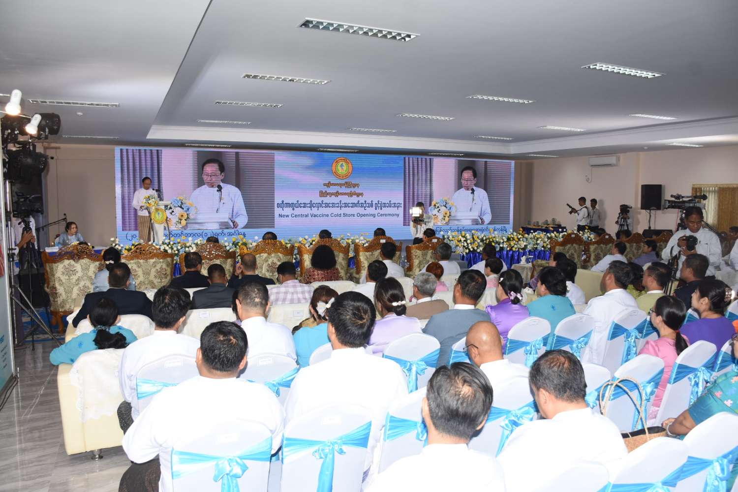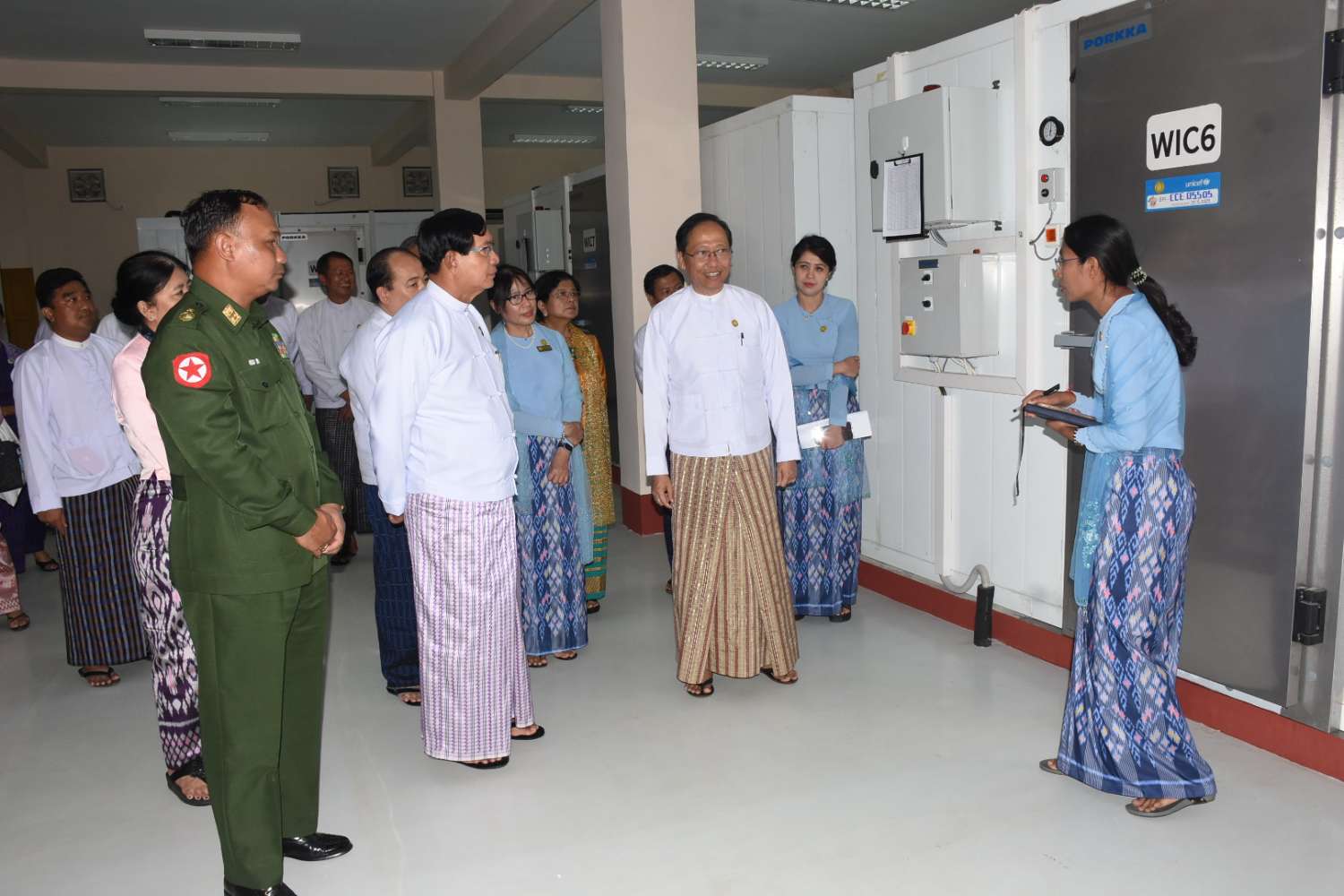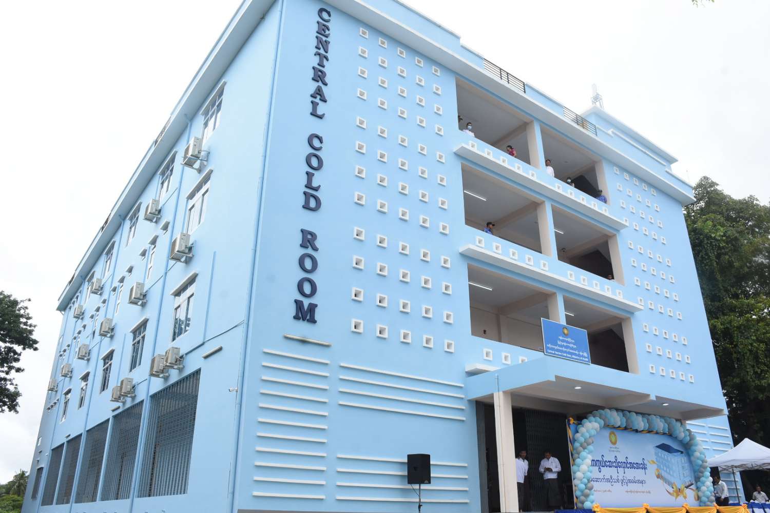 ထို့နောက် ပြည်ထောင်စုဝန်ကြီးက ကျန်းမာရေးဝန်ကြီးဌာနအနေဖြင့် ရန်ကုန်တိုင်းဒေသကြီး ဗဟိုကာကွယ်ဆေးသိုလှောင်အအေးခန်း(ရန်ကုန်) တွင်ကာကွယ်ဆေးများနှင့် ဆက်စပ်ပစ္စည်းများကို အအေးလမ်းကြောင်းမပျက် စနစ်တကျ သိုလှောင်ထိန်းသိမ်းထားရှိပြီး တိုင်းဒေသကြီး/ပြည်နယ်များသို့ စနစ်တကျဖြန့်ဖြူးပေးလျက်ရှိပါကြောင်း၊ ယခုအခါ ကာကွယ်ဆေးများအမျိုးအစား တိုးချဲ့ထိုးနှံလာခြင်းနှင့်အတူ အဆိုပါ ဆေးနှင့်ဆေးပစ္စည်းများ သိုလှောင်ရန် နေရာထပ်မံလိုအပ်ပါသဖြင့် လက်ရှိလေးထပ်ဆောင် အဆောက်အဦသစ်ကို ကျန်းမာရေးဝန်ကြီးဌာနနှင့် ကုလသမဂ္ဂကလေးများရန်ပုံငွေအဖွဲ့ (UNICEF) တို့ပူးပေါင်းကာ ငွေကျပ် (၂ ဒသမ ၃) ဘီလီယံ အကုန်ကျခံတည်ဆောက်ခဲ့ခြင်းဖြစ်ပြီး (၂၀၂၃) ခုနှစ် ဧပြီလတွင် ဆောက်လုပ်ပြီးစီးခဲ့ပါကြောင်း။