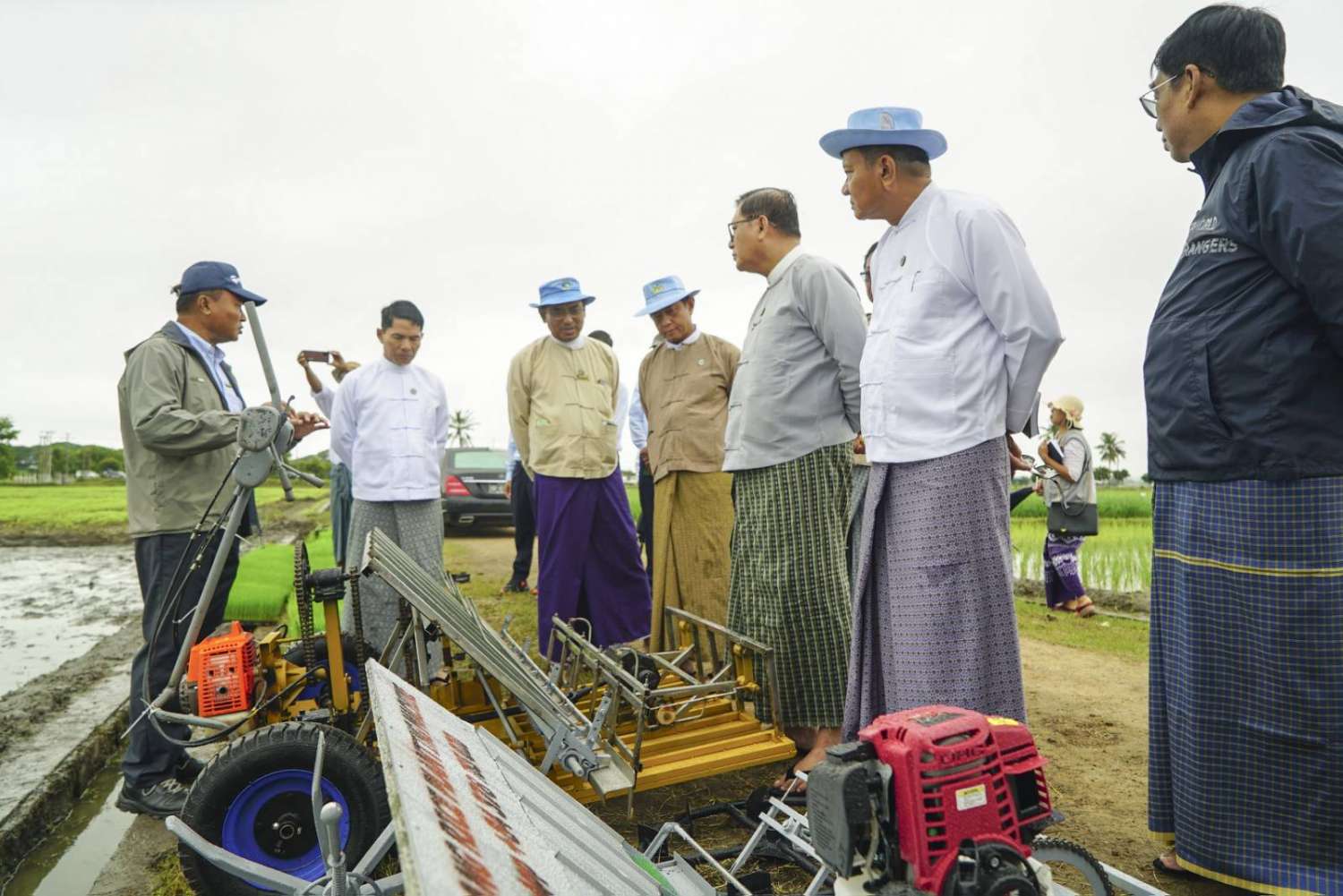 မြန်မာ့လယ်ယာသုံးစက်ကိရိယာစက်ရုံ (အင်းကုန်း) မှထုတ်လုပ်သည့် ၆ တန်းသွား၊ လက်ဆွဲကောက်စိုက်စက်နှင့် ဗီယက်နမ်နိုင်ငံမှထုတ်လုပ်သည့် ၆ တန်းသွား ကောက်စိုက်စက်တို့ သရုပ်ပြနှိုင်းယှဉ် စိုက်ပျိုးပြသခြင်းကို ယနေ့နံနက်ပိုင်းက စိုက်ပျိုးရေးသုတေသနဦးစီးဌာန၊ ရေဆင်းရှိ စိုက်ကွင်းအတွင်းပြုလုပ်ရာ စိုက်ပျိုးရေး၊ မွေးမြူရေးနှင့် ဆည်မြောင်းဝန်ကြီးဌာန ပြည်ထောင်စုဝန်ကြီး ဦးမင်းနောင်နှင့် ဒုတိယဝန်ကြီးများ၊ တာဝန်ရှိသူများ တက်ရောက်ကြည့်ရှု အားပေးသည်။