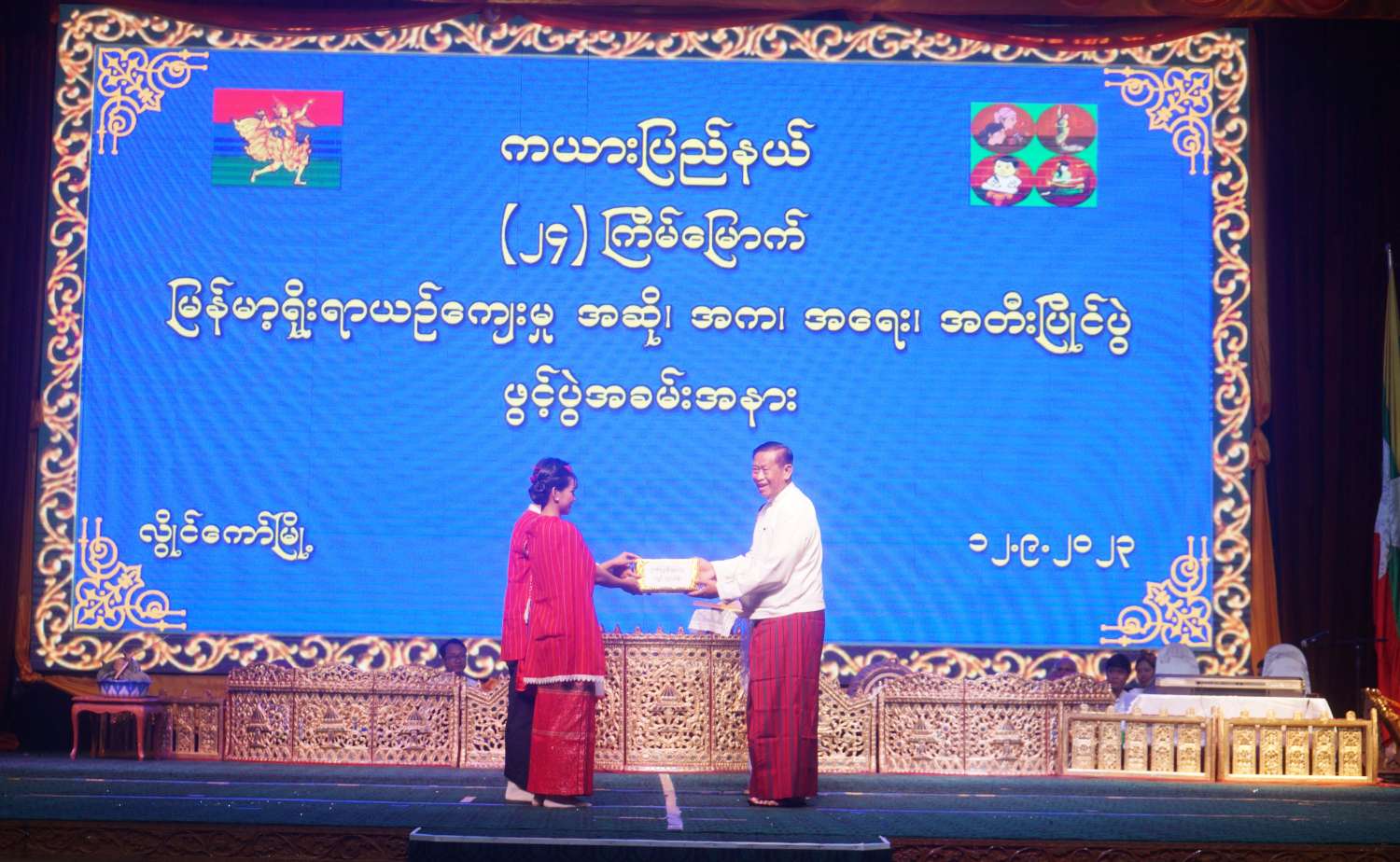 ကယားပြည်နယ် (၂၄)ကြိမ်မြောက် မြန်မာ့ရိုးရာယဉ်ကျေးမှု အဆို၊ အက၊ အရေး၊ အတီး ပြိုင်ပွဲ (ပြည်နယ်အဆင့်) ပြိုင်ပွဲကို ယနေ့စက်တင်ဘာ ၁၂ ရက်မှ ၁၄ ရက်အထိ ကျင်းပပြုလုပ်သွားမည်ဖြစ်ပြီး ပညာရှင်နှင့်ဝါသနာရှင် စုစုပေါင်း ပြိုင်ပွဲဝင်ဦးရေ(၃၆၉)ဦး ဝင်ရောက်ယှဉ်ပြိုင်ကြမည်ဖြစ်ကာ ပြည်နယ်အဆင့်ပြိုင်ပွဲ ဆုချီးမြှင့်ပွဲအခမ်းအနား၌ အဆို၊ အက၊ အရေး၊ အတီး ကဏ္ဍအလိုက် ဆုရရှိသူများကို ထိုက်ထိုက်တန်တန် ဂုဏ်ပြုချီးမြှင့်ပေးသွားမည် ဖြစ်ကြောင်းသိရသည်။