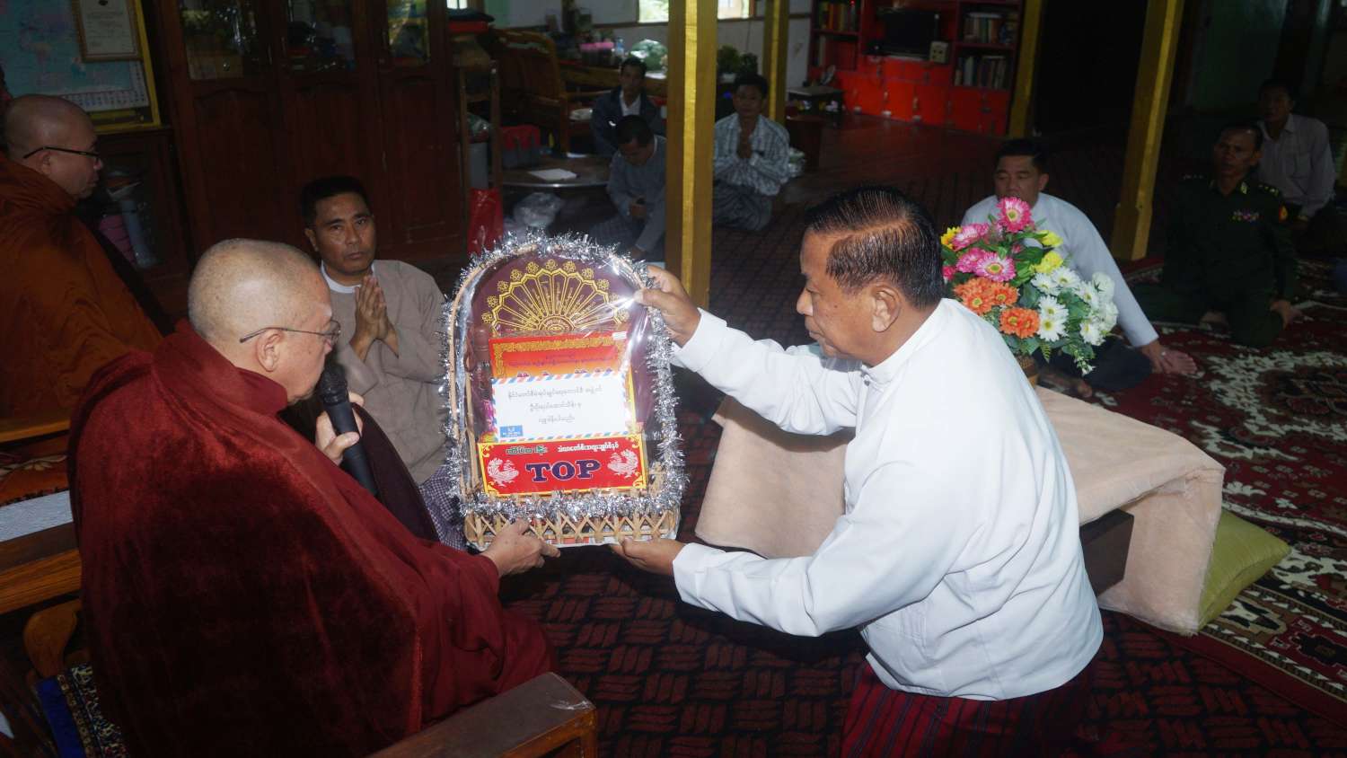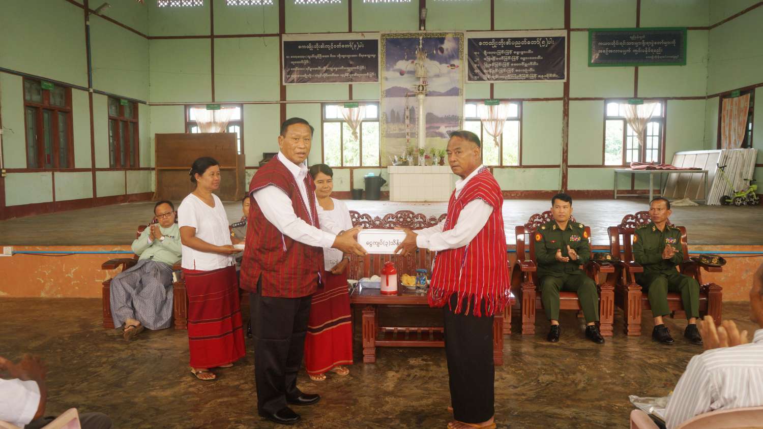 မွန်းလွဲပိုင်းတွင် နိုင်ငံတော်စီမံအုပ်ချုပ်ရေးကောင်စီအဖွဲ့ဝင်၊ ပြည်နယ်ဝန်ကြီးချုပ်နှင့် တာဝန်ရှိသူများသည် ထေးသမရပ်ကွက်ရှိ မောဒူဒီးဘိုးဟိုးခန်းမဆောင်၌ ကေ့ထျိုးဘိုး ဂေါပကအဖွဲ့ဝင်များ၊ ထေးသမရပ်ကွက်တွင်နေထိုင်နေကြသော ယာယီနေရပ်စွန့်ခွာပြည်သူများနှင့်တွေ့ဆုံ၍ ပြည်နယ်ဖွံ့ဖြိုးတိုးတက်ရေးလုပ်ငန်းများ၊ ဒေသတည်ငြိမ်အေးချမ်းရေးအတွက် တိုင်းရင်းသားညီအစ်ကိုမောင်နှမများနှင့် ပူးပေါင်းဆောင်ရွက်သွားမည့် အခြေအနေများကို ရှင်းလင်းပြောကြားပြီး နိုင်ငံတော်စီမံအုပ်ချုပ်ရေးကောင်စီအဖွဲ့ဝင်က ကေ့ထျိုးဘိုးဂေါပကအဖွဲ့အတွက် ထောက်ပံ့ငွေများကိုလည်းကောင်း၊ ပြည်နယ်ဝန်ကြီးချုပ်က ထေးသမရပ်ကွက်ရှိ ယာယီနေရပ်စွန့်ခွာပြည်သူများအတွက် ထောက်ပံ့ငွေများကိုလည်းကောင်း ပေးအပ်ကြသည်။