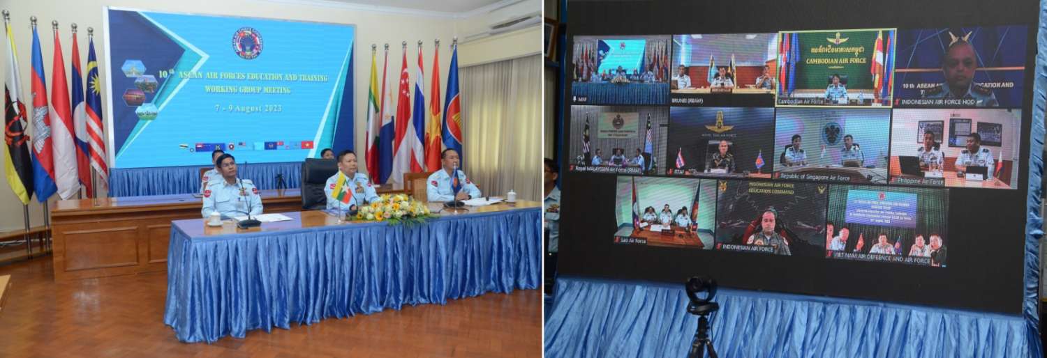 ထို့အပြင် (၂၀)ကြိမ်မြောက် အာဆီယံလေတပ်ဦးစီးချုပ်များအစည်းအဝေး(20th AACC)ဆက်စပ်အစည်းအဝေးတစ်ခုဖြစ်သော (၁၀)ကြိမ်မြောက် အာဆီယံလေတပ်များပညာရေးနှင့် လေ့ကျင့်ရေးဆိုင်ရာ လုပ်ငန်းအဖွဲ့အစည်းအဝေး 10th ASEAN Air Forces Education and Training – Working Group Meeting(10th AAFET-WG)အား ၂၀၂၃ ခုနှစ်၊ ဩဂုတ်လ ၇ ရက်နေ့မှ ၉ ရက်နေ့အထိ ကာကွယ်ရေးဦးစီးချုပ်ရုံး(လေ)၊ အစည်းအဝေးခန်းမတွင် Video Conferencing စနစ်ဖြင့် ကျင်းပပြုလုပ်ခဲ့သည်။ အဆိုပါအခမ်းအနားသို့ အာဆီယံ ၁၀ နိုင်ငံလေတပ်များ၏ တက်ရောက်လာကြသော ကိုယ်စားလှယ်များက “Advancing Education and Training Exchanges for Sustainable Environment Amongst ASEAN Air Forces” အကြောင်းအရာအား ဆွေးနွေးခဲ့ကြပြီးနောက် သဘာပတိကဆွေးနွေးပွဲအနှစ်ချုပ်ကို ဖတ်ကြားခဲ့ကြောင်း သိရှိရသည်။
