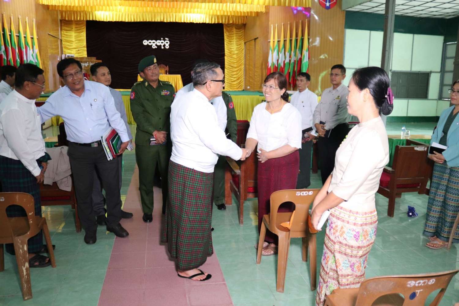 ယင်းနောက် ချင်းပြည်နယ်အတွင်းရှိ မြို့နယ်များသို့ သွားရောက်တာဝန်ထမ်းဆောင်မည့် ဌာနဆိုင်ရာဝန်ထမ်းများ၏ တင်ပြချက်များအပေါ် နိုင်ငံတော်စီမံအုပ်ချုပ်ရေးကောင်စီအဖွဲ့ဝင်နှင့် ပြည်နယ်ဝန်ကြီးချုပ်တို့က ပေါင်းစပ်ညှိနှိုင်းဆောင်ရွက်ပေးခဲ့ပြီး အခမ်းအနားသို့ တက်ရောက်လာသည့် ဌာနဆိုင်ရာဝန်ထမ်းများအား ရင်းရင်းနှီးနှီးနှုတ်ဆက်ကြသည်။