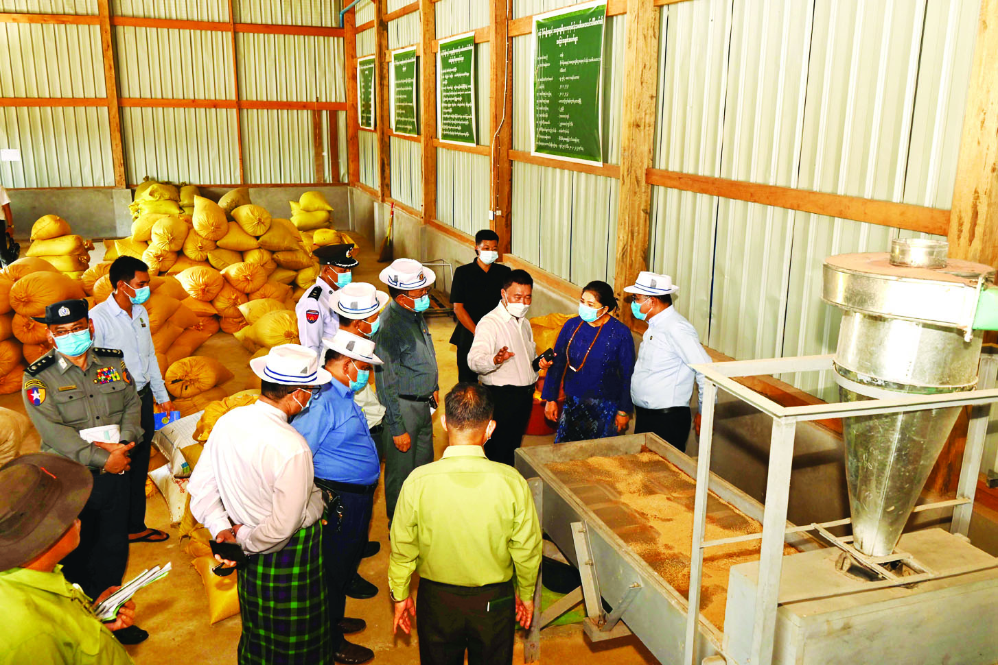 ထို့နောက် နိုင်ငံတော်စီမံအုပ်ချုပ်ရေးကောင်စီအဖွဲ့ဝင်၊ ပြည်နယ်ဝန်ကြီးချုပ်တို့သည် ပူတာအိုမြို့ လုံးစွတ်ရပ်ကွက်အတွင်းရှိ နိုင်ငံ့စီးပွားမြှင့်တင်ရေး ရန်ပုံငွေကျပ် သိန်း ၃၅၀ ပံ့ပိုးမှုဖြင့် ဒေသတွင်းပထမဆုံး တည်ထောင်ဖွင့်လှစ်ထားသည့် ဆန်စိုက်ပျိုးရေးနှင့် အထွေထွေစီးပွားရေးလုပ်ငန်း သမဝါယမအသင်းလီမိတက်ပိုင် တစ်ရက်လျှင် ဆန် ၁၈ တန်ကျ ဆန်စက်လုပ်ငန်းကို သွားရောက်ကြည့်ရှုကြပြီး လိုအပ်ချက်/ အခက်အခဲများကို မေးမြန်းဆွေးနွေး၍ တာဝန်ရှိသူများနှင့် ပေါင်းစပ်ဆောင်ရွက်ပေးသည်။