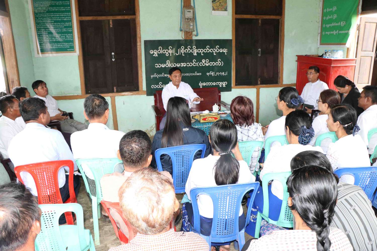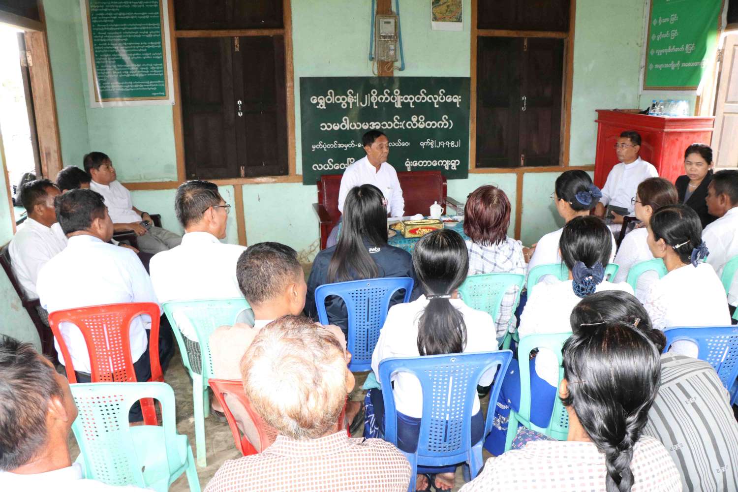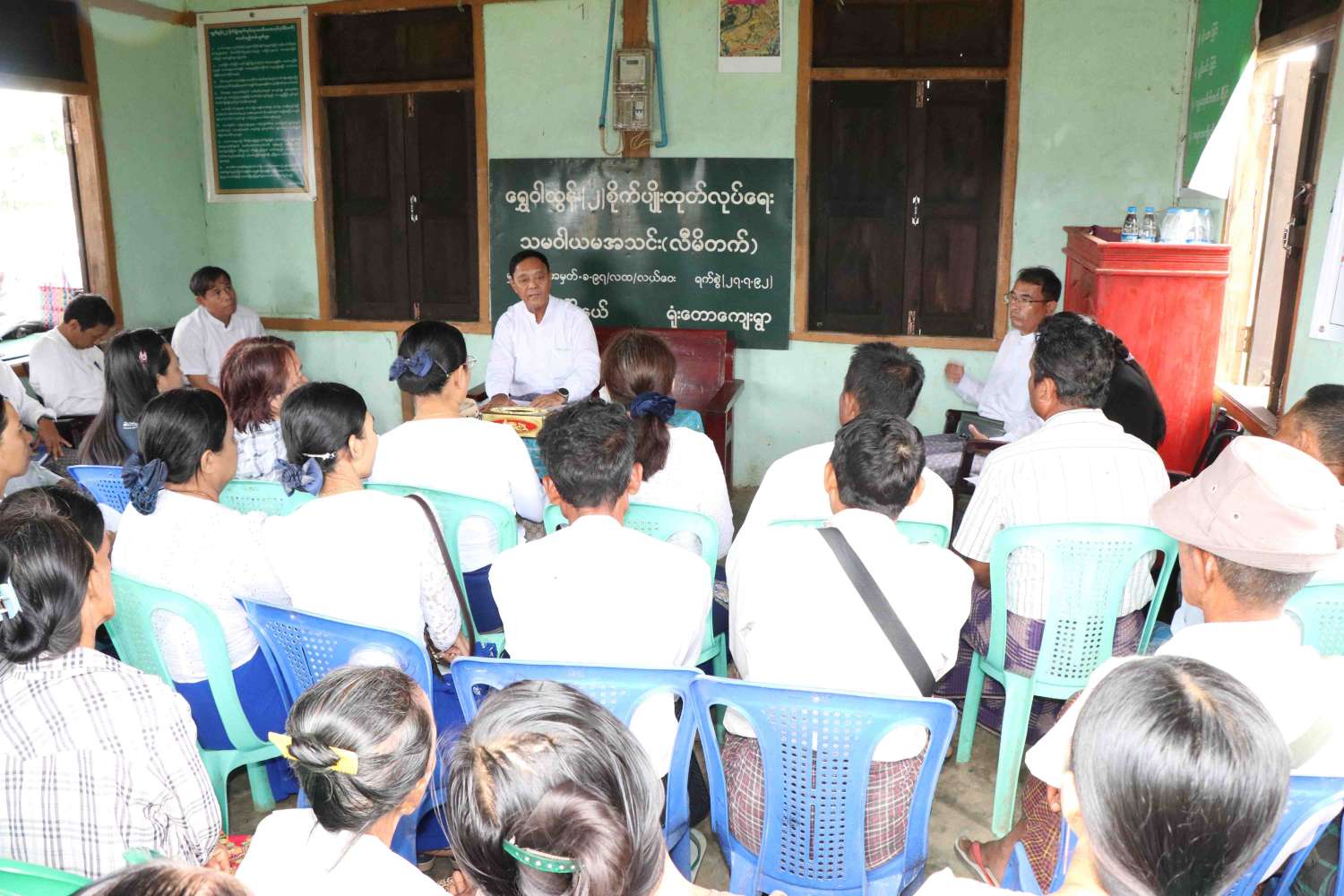 ထို့နောက် ပြည်ထောင်စုဝန်ကြီးသည် ရုံးတောကျေးရွာ ယာယီရှင်းလင်းဆောင်၌ ဒေသခံပြည်သူများနှင့်တွေ့ဆုံရာ ဌာနဆိုင်ရာတာဝန်ရှိသူများက ရုံးတောကျေးရွာ ဒေသဖွံ့ဖြိုးရေးလုပ်ငန်းများဆောင်ရွက်ခဲ့မှု၊ ဆိုလာစွမ်းအင်ဖြင့် စိုက်ပျိုးရေရရှိရေးဆောင်ရွက်ပေးမည့် အစီအမံများနှင့် သမဝါယမလုပ်ငန်းများ ဆောင်ရွက်နေမှုအခြေအနေကို ရှင်းလင်းတင်ပြကြသည်။