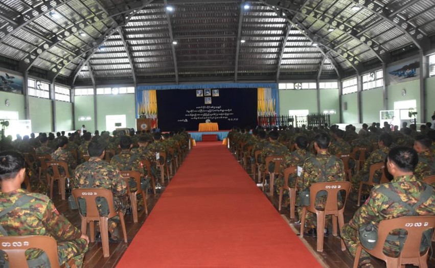 ထို့နောက် ဒုတိယဗိုလ်ချုပ်ကြီး ဖုန်းမြတ်က ပြည်သူ့စစ်(ဌာနေ) တပ်ဖွဲ့ဝင်များအား လက်နက်များ အပ်နှင်းပေးသည်။ ယင်းနောက် တိုင်းဒေသကြီးဝန်ကြီးချုပ်နှင့် တာဝန်ရှိသူများက ပြည်သူ့စစ် (ဌာနေ) တပ်ဖွဲ့ဝင်များအား စားသောက်ဖွယ်ရာများနှင့် စစ်ဝတ်ပစ္စည်းများ ထောက်ပံ့ပေးအပ်ရာ ပြည်သူ့စစ် (ဌာနေ) တပ်ဖွဲ့ဝင်များကိုယ်စား တာဝန်ရှိသူတစ်ဦးက ကျေးဇူးတင်စကား ပြန်လည်ပြောကြားသည်။