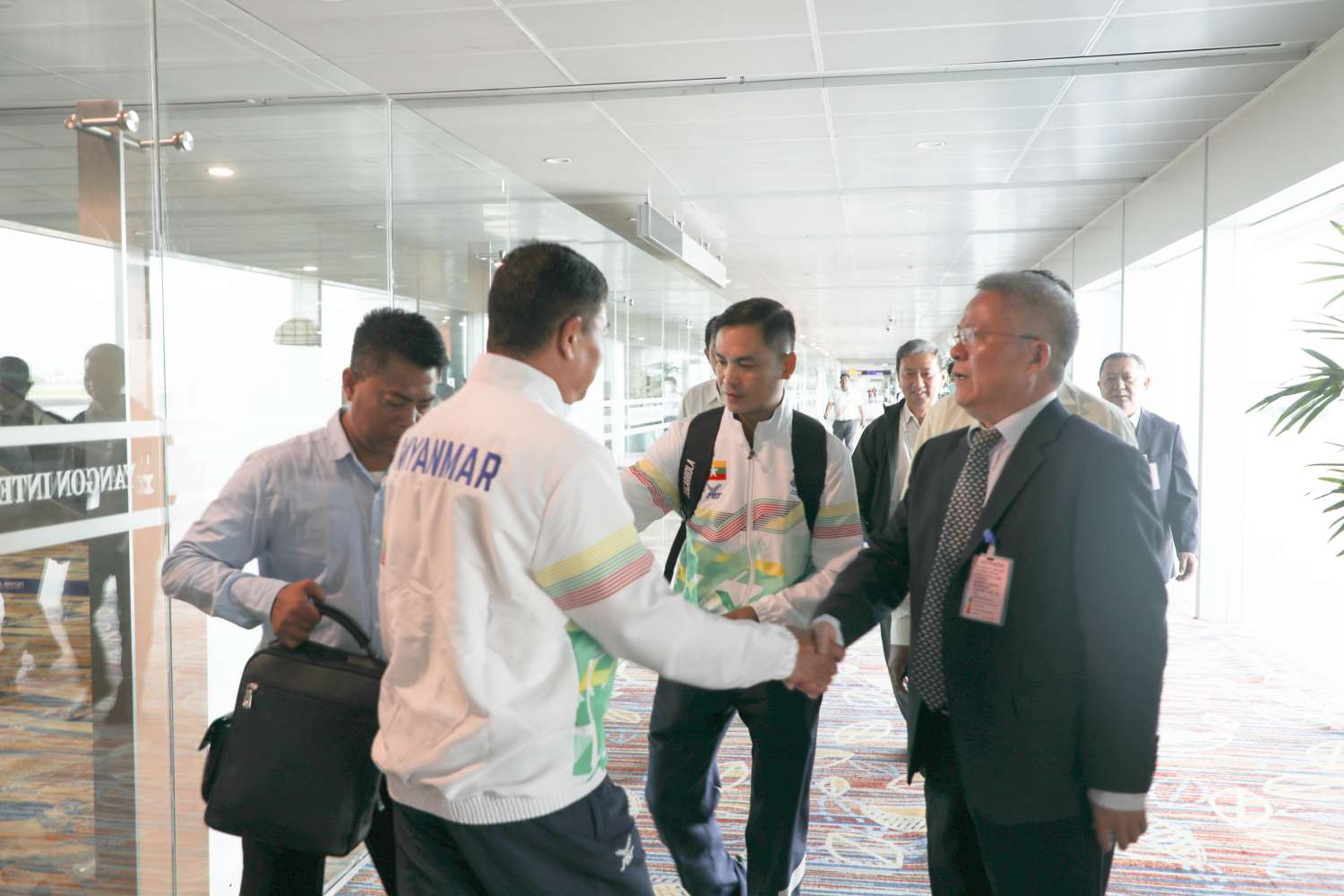 ၂၀၂၃ခုနှစ်၊ စက်တင်ဘာ (၂၃) ရက်မှ အောက်တိုဘာ (၈) ရက်အထိ တရုတ်ပြည်သူ့သမ္မတနိုင်ငံ ဟန်ကျိုးမြို့တွင် ကျင်းပပြုလုပ်မည့် (၁၉) ကြိမ်မြောက် အာရှအားကစားပြိုင်ပွဲသို့ တက်ရောက်မည့် မြန်မာနိုင်ငံအိုလံပစ်ကော်မတီဥက္ကဋ္ဌ အားကစားနှင့်လူငယ်ရေးရာဝန်ကြီးဌာန ပြည်ထောင်စုဝန်ကြီး ဦးမင်းသိန်းဇံ နှင့်အတူ အုပ်ချုပ်မှုအဖွဲ့(၆)ဦး၊ ဝူရှူး အားကစားနည်းမှ ဒုတိယဥက္ကဋ္ဌနှင့် နည်းပြ (၁) ဦး ၊ အမျိုးသား အားကစားသမား (၁) ဦး၊ အမျိုးသမီး အားကစားသမား (၃) ဦး၊ တိုက်ကွမ်ဒိုအားကစားနည်းမှ အုပ်ချုပ်/နည်းပြ (၁) ဦးနှင့် အမျိုးသားအားကစားသမား (၁) ဦး တို့သည် ယနေ့နံနက် ၁၁ နာရီ ၂၅ မိနစ်တွင် တရုတ်နိုင်ငံသို့ ထွက်ခွာသွားရာ မြန်မာနိုင်ငံဆိုင်ရာ တရုတ်ပြည်သူ့သမ္မတနိုင်ငံသံရုံးမှ ယဉ်ကျေးမှုသံမှူး Mr.Pan Feng ၊ ရန်ကုန်တိုင်းဒေသကြီးအစိုးရအဖွဲ့ ဥပဒေချုပ် ဦးဌေးအောင်နှင့် အားကစားနှင့် ကာယပညာဦးစီးဌာနမှ တာဝန်ရှိပုဂ္ဂိုလ်များက ရန်ကုန်အပြည်ပြည်ဆိုင်ရာလေဆိပ်၌ လိုက်လံပို့ဆောင် နှုတ်ဆက်ကြသည်။