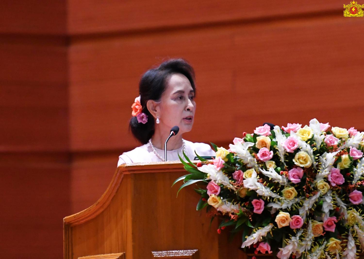 ပြည်ထောင်စုငြိမ်းချမ်းရေး ညီလာခံ-(၂၁)ရာစုပင်လုံ စတုတ္ထအစည်းအဝေး ညီလာခံ တတိယနေ့ကို ယနေ့နံနက် ၁၀ နာရီတွင် နေပြည်တော်ရှိ မြန်မာအပြည်ပြည်ဆိုင်ရာ ကွန်ဗင်း ရှင်းဗဟိုဌာန(၂)၌ ကျင်းပရာ အမျိုးသားပြန်လည်သင့်မြတ်ရေးနှင့် ငြိမ်းချမ်းရေး ဗဟိုဌာန ဥက္ကဋ္ဌ နိုင်ငံတော်၏အတိုင်ပင်ခံပုဂ္ဂိုလ်ဒေါ်အောင်ဆန်းစုကြည် တက်ရောက်၍ ကျေးဇူးတင် စကား ပြောကြားသည်။