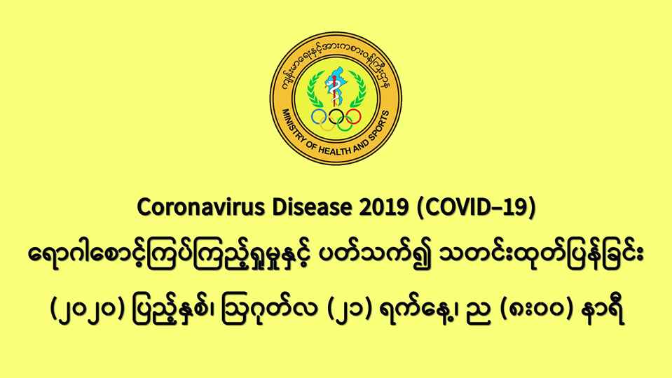 - အမျိုးသားကျန်းမာရေးဓာတ်ခွဲမှုဆိုင်ရာဌာန (ရန်ကုန်) (NHL) မှ (ပထမအသုတ်) ဓာတ်ခွဲနမူနာ (၃၇၆) ခု၊