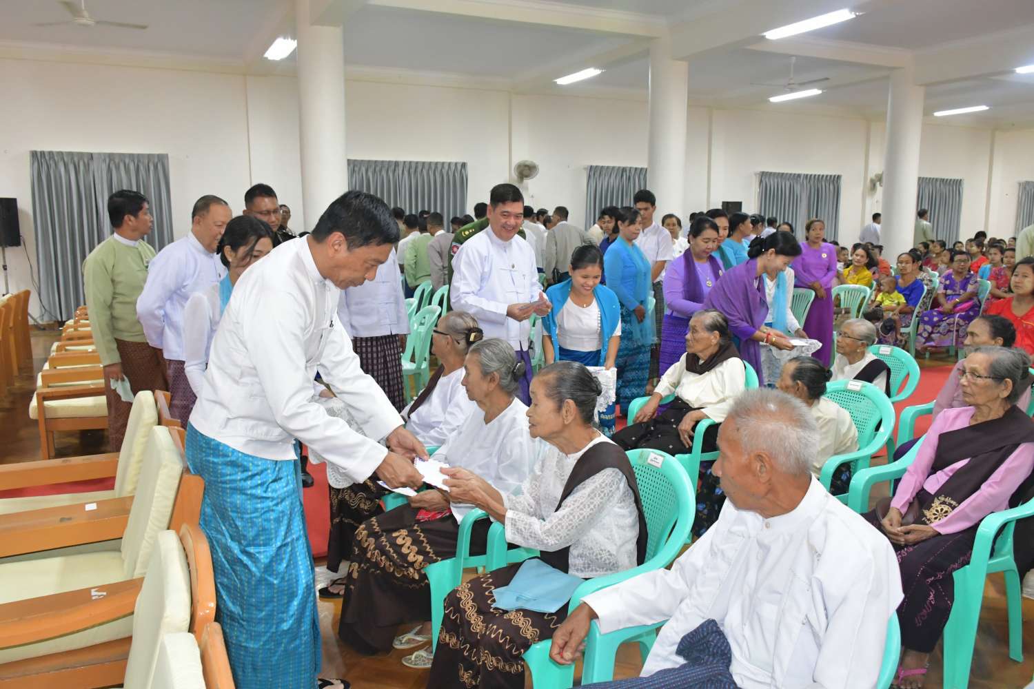 ထို့နောက် ပြည်ထောင်စုဝန်ကြီးက ရခိုင်ပြည်နယ်အတွင်းရှိ ကိုယ်ဝန်ဆောင်မိခင်များနှင့် ၎င်းတို့မှမွေးဖွားလာသော အသက်(၂)နှစ်အောက် ကလေးသူငယ်များ ထောက်ပံ့ရေးအစီအစဉ်အရ အကျိုးခံစားခွင့်ရှိသူ (၆၈၃၂၈) ဦးအတွက် ထောက်ပံ့ကြေး ငွေကျပ် (၂၈၉၇ ဒသမ ၅၂) သန်းနှင့် အသက် (၈၅) နှစ်အထက် သက်ကြီးဘိုးဘွား (၁၄၂၈၉) ဦးအတွက် လူမှုရေးပင်စင်ထောက်ပံ့ငွေကျပ် (၄၂၈ ဒသမ ၆၇) သန်းကို ရခိုင်ပြည်နယ်ဝန်ကြီးချုပ် ဦးထိန်လင်းထံသို့ လွှဲပြောင်းပေးအပ်သည်။ ယင်းနောက် ပြည်ထောင်စုဝန်ကြီးသည် တည်ထောင်ခွင့်ပြုမိန့်ရ စေတနာ့ဝန်ထမ်းအဖွဲ့အစည်း (၃) ဖွဲ့သို့ထောက်ပံ့ငွေကျပ် (၄၆ဒ သမ ၈၁၅) သန်းကို မေတ္တာဥယျာဉ် လူငယ်ဖွံ့ဖြိုးရေးပရဟိတဂေဟာသို့ ထောက်ပံ့ပေးအပ်၍ အခမ်းအနားသို့ တက်ရောက်လာကြသည့် သက်ကြီးဘိုးဘွားများ၊ ကိုယ်ဝန်ဆောင် မိခင်များနှင့် အသက် (၂) နှစ်အောက် ကလေးငယ်များကို ထောက်ပံ့ငွေများလက်ရောက်ပေးအပ်သည်။