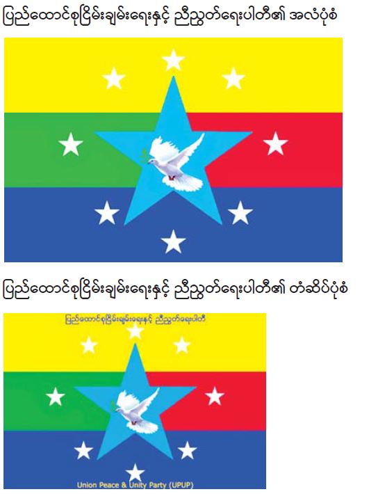 ၁။ ပဲခူးတိုင်းဒေသကြီး၊ ပြည်မြို့၊ ဘုရားကြီးဘုရားအနီး၊ ဆည်မြောင်းတိုးချဲ့ရပ်ကွက်၊ သရဖီလမ်း၊ အိမ်အမှတ် (၂) တွင် ပါတီရုံးချုပ်တည်ရှိသော ပြည်ထောင်စုငြိမ်းချမ်းရေးနှင့် ညီညွတ်ရေးပါတီက နိုင်ငံရေးပါတီများမှတ်ပုံတင်ခြင်းဥပဒေ ပုဒ်မ ၅ အရ နိုင်ငံရေးပါတီအဖြစ် မှတ်ပုံတင်ခွင့်ပြုရန် ၂၅-၉-၂၀၂၃ ရက်နေ့တွင် လျှောက်ထားလာပါသည်။ ယင်းသို့ လျှောက်ထားရာတွင် ပါတီအမည်၊ အလံနှင့် တံဆိပ်တို့ကို ဖော်ပြပါအတိုင်း အသုံးပြုမည်ဖြစ်ကြောင်း တင်ပြလာပါသည်။