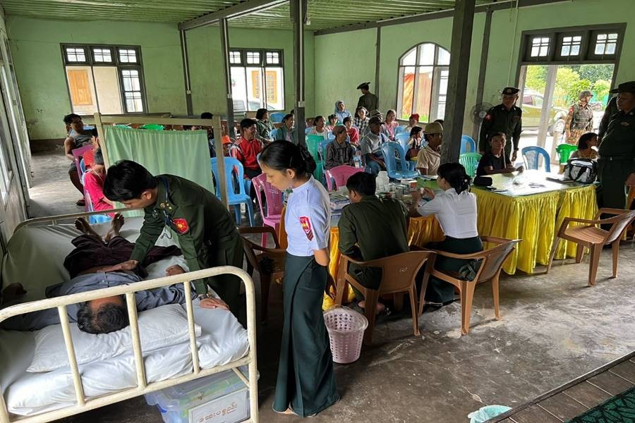 ထိုသို့ဆောင်ရွက်ပေးလျက်ရှိရာ ယနေ့တွင် ရှမ်းပြည်နယ်(မြောက်ပိုင်း)၊ သိန်းနီမြို့ရှိ ကောင်းဟော်ကျေးရွာနှင့် ကွမ်းလုံမြို့ရှိ ဟိုလီကျေးရွာများမှ ဒေသခံတိုင်းရင်းသား ပြည်သူ ၁၄၇ ဦးတို့ကိုလည်းကောင်း၊ ရန်ကုန်တိုင်းဒေသကြီး၊ ကွမ်းခြံကုန်းမြို့နယ်၊ တော်ခလူးကျေးရွာနှင့် အနီးပတ်ဝန်းကျင်ကျေးရွာများမှ သံဃာတော်များနှင့် ဒေသခံ ပြည်သူ ၂၄၇ ဦးတို့ကိုလည်းကောင်း သက်ဆိုင်ရာ တိုင်းစစ်ဌာနချုပ်များရှိ နယ်မြေခံ ဆေးကုသရေးအဖွဲ့များက သတ်မှတ်နေရာအသီးသီး၌ သွားနှင့်ခံတွင်းရောဂါ၊ မျက်စိ ရောဂါ၊ သားဖွား မီးယပ်ဆိုင်ရာရောဂါ၊ အရိုးအကြောရောဂါ၊ နား၊ နှာခေါင်း၊ လည်ချောင်းဆိုင်ရာရောဂါ၊ ကလေးရောဂါ၊ ခွဲစိတ်ကုသမှုဆိုင်ရာရောဂါ၊ အထွေထွေရောဂါတို့နှင့် ပတ်သက်၍ လိုအပ်သည့် ဆေးဝါးကုသမှုများ ဆောင်ရွက်ပေးခြင်း ၊ ECG၊ Ultrasound စက်တို့ဖြင့် ရောဂါရှာဖွေစမ်းသပ်ခြင်းများ ဆောင်ရွက်ပေးသည်။