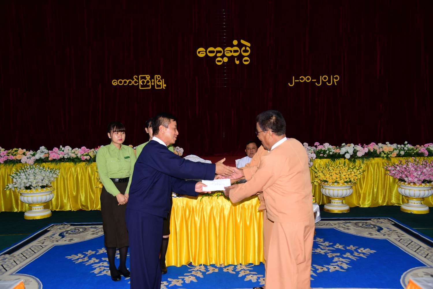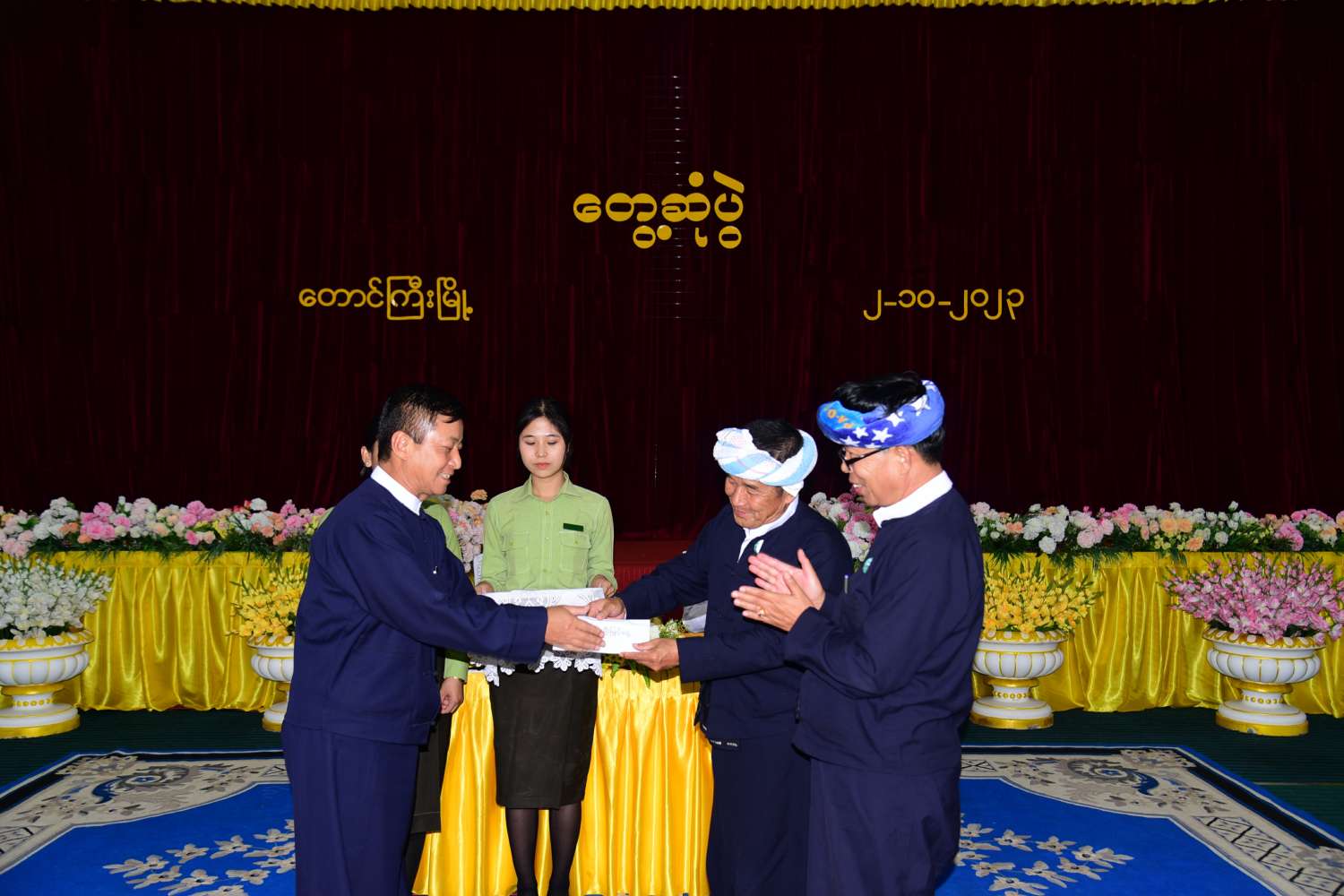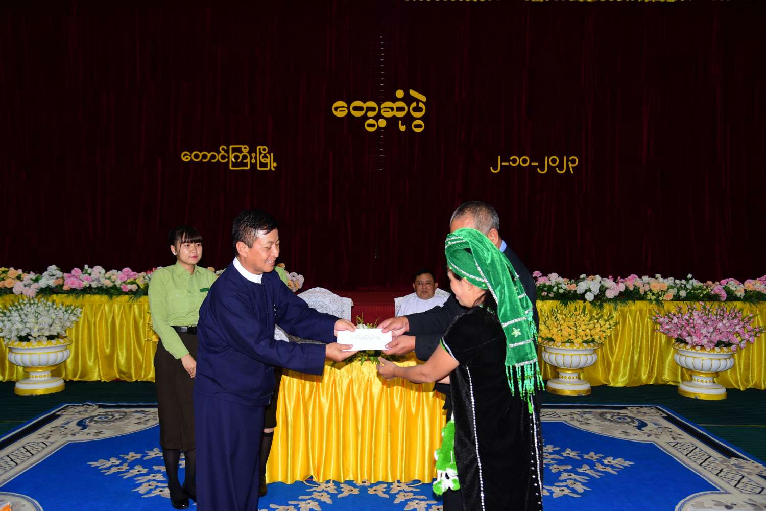 ထို့နောက် နိုင်ငံတော်စီမံအုပ်ချုပ်ရေးကောင်စီအဖွဲ့ဝင် ဦးခွန်စံလွင်၊ ပြည်နယ်ဝန်ကြီးချုပ် ဦးအောင်ဇော်အေး၊ ပြည်နယ်တိုင်းရင်းသားရေးရာဝန်ကြီး ဦးအောင်ကြည်ဝင်းတို့က တိုင်းရင်းသားစာပေယဉ်ကျေးမှုအဖွဲ့များအား ချီးမြှင့်ငွေများပေးအပ်၍ နိုင်ငံတော်စီမံအုပ်ချုပ်ရေးကောင်စီအဖွဲ့ဝင် ဦးခွန်စံလွင်က နိဂုံးချုပ်အမှာစကားပြောကြားပြီး တက်ရောက်လာသူများအား ရင်းရင်းနှီးနှီးနှုတ်ဆက်ခဲ့ကြောင်း သိရသည်။