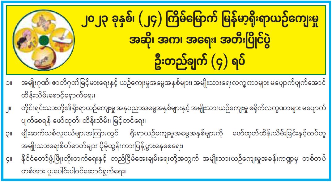 ၂၀၂၃၊ (၂၄)ကြိမ်မြောက် မြန်မာ့ရိုးရာယဉ်ကျေးမှု အဆို၊ အက၊ အရေး၊ အတီးပြိုင်ပွဲ ဦးတည်ချက် (၄)ရပ် 10/04/2023