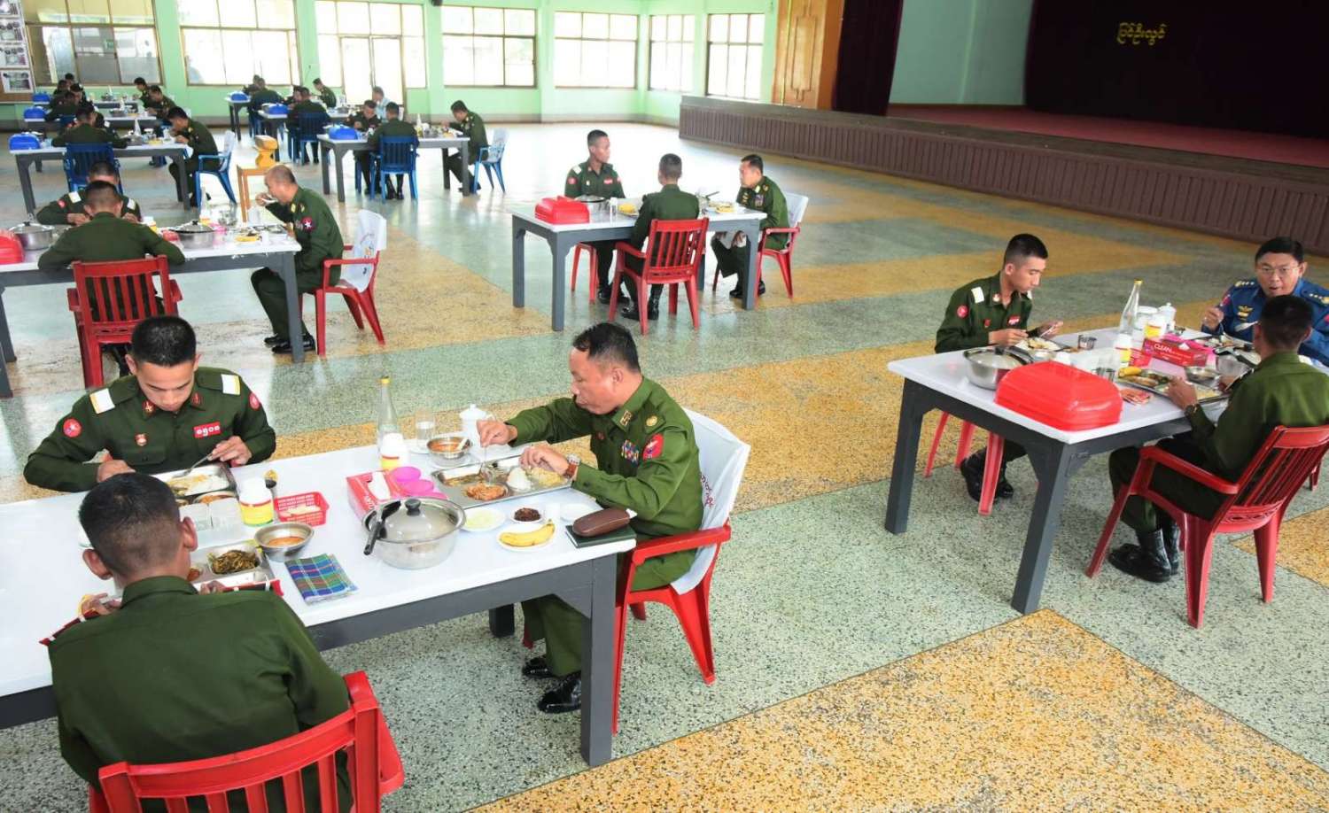 ထို့နောက် မွန်းလွဲပိုင်းတွင် နိုင်ငံတော်စီမံအုပ်ချုပ်ရေးကောင်စီ ဒုတိယဥက္ကဋ္ဌ ဒုတိယတပ်မတော်ကာကွယ်ရေးဦးစီးချုပ် ကာကွယ်ရေးဦးစီးချုပ် (ကြည်း)နှင့် အဖွဲ့ဝင်များသည် ပညာတန်ဆောင်ဗိုလ်လောင်းစားရိပ်သာ၌ သင်တန်းသားဗိုလ်လောင်းများနှင့်အတူ နေ့လယ်စာကို အတူတကွသုံးဆောင်ခဲ့ကြပြီး ဗိုလ်လောင်းများအား ရင်းရင်းနှီးနှီးလိုက်လံနှုတ်ဆက်၍ အားပေးစကားပြောကြားခဲ့သည်။ ယင်းနောက် နေ့လယ်ပိုင်းတွင် စစ်လက်ရုံးရွေးချယ်မှုအား ဆက်လက်ပြုလုပ်ခဲ့ကြောင်း သတင်းရရှိသည်။