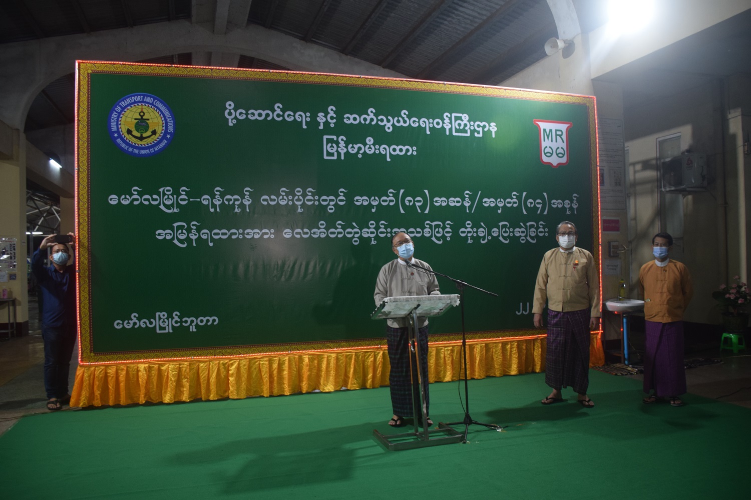 ပို့ဆောင်ရေးနှင့် ဆက်သွယ်ရေးဝန်ကြီးဌာန မြန်မာ့မီးရထားမှ ရန်ကုန်-မော်လမြိုင်လမ်းပိုင်း၌ လေအေးပေးစက်ပါလေအိတ်တွဲ ဆိုင်းအသစ်များဖြင့် အမှတ် (၈၃) အဆန် လူစီးအမြန်ရထားနှင့် အမှတ် (၈၄) အစုန်လူစီးအမြန်ရထား စတင်ပြေးဆွဲပေးခြင်းအခမ်းအနားကို ယမန်နေ့ ည ၉ နာရီတွင် မော်လမြိုင်ဘူတာ အမှတ် (၁) စင်္ကြန်၌ ကျင်းပသည်။