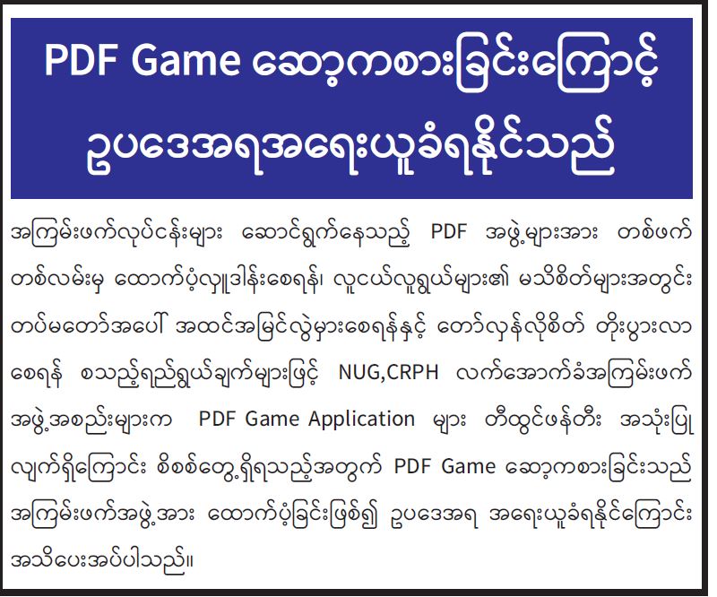 PDF Game ဆော့ကစားခြင်းကြောင့် ဉပဒေအရအရေးယူခံရနိုင်သည်