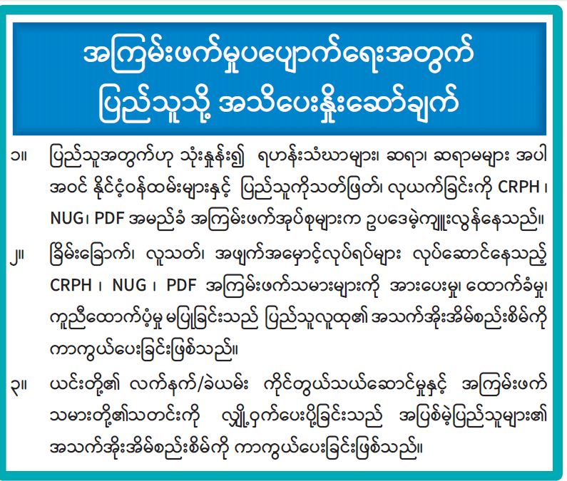 အကြမ်းဖက်မှုပပျောက်ရေးအတွက်ပြည်သူသို့ အသိပေးနှိုးဆော်ချက်