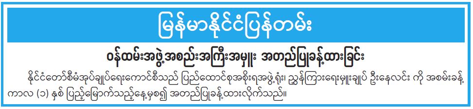ဝန်ကြီးဌာန ကြေညာချက်များ