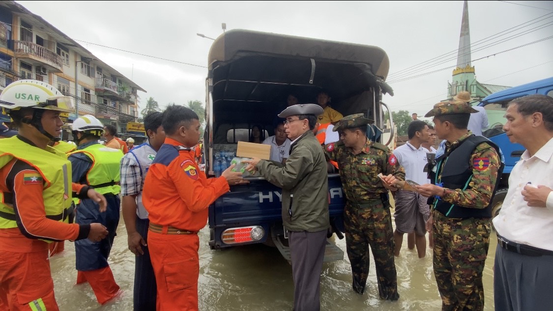 တိုင်းဒေသကြီးအစိုးရအဖွဲ့၊ ဝန်ကြီးချုပ် ဦးမျိုးဆွေဝင်းသည် တောင်ပိုင်းတိုင်းစစ်ဌာနချုပ် တိုင်းမှူး ဗိုလ်မှူးချုပ်ကြည်သိုက်၊ လူမှုဝန်ထမ်းကယ်ဆယ်ရေးနှင့် ပြန်လည်နေရာချထားရေး ဝန်ကြီးဌာန၊ ဒုတိယဝန်ကြီးတို့နှင့်အတူ ယနေ့မွန်းလွဲပိုင်းက ပဲခူးမြို့၊ ရေဘေးကူညီကယ်ဆယ်ရေးလုပ်ငန်းများအား အရှိန်အဟုန်ဖြင့် ဆက်လက်ဆောင်ရွက်နိုင်ရေး လှည့်လည်ကြည့်ရှုစစ်ဆေးခဲ့သည်။