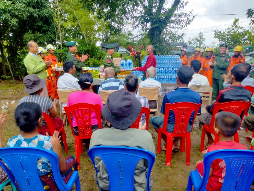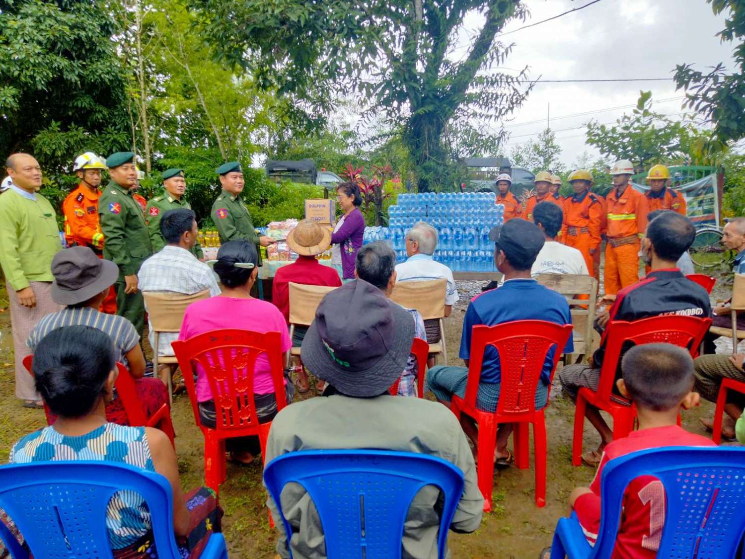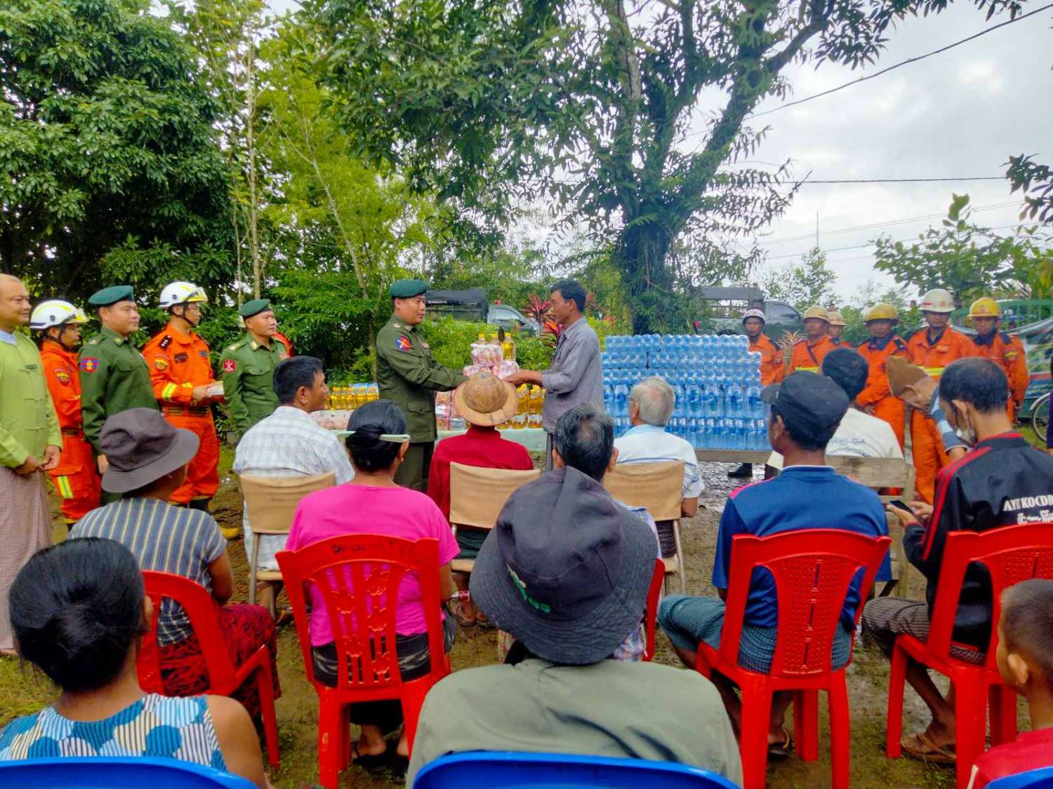 ဦးစွာတိုက်ကြီးတပ်နယ်မှူးက သာယာကုန်းကျေးရွာနှင့် ပိန်းအင်းကျေးရွာများရှိ ရေဘေးသင့်ပြည်သူများအား ရင်းရင်းနှီးနှီးအားပေးစကားပြောကြားခဲ့ပြီး တိုက်ကြီးတပ်နယ်မှူး ဗိုလ်မှူးကြီးစိန်မြင့်၊ မြို့နယ်စီမံအုပ်ချုပ်ရေးအဖွဲ့ဝင်(၁) ဗိုလ်မှူးရဲမင်းအောင်နှင့် တာဝန်ရှိသူများက ထောက်ပံ့ပေးအပ်သည်။