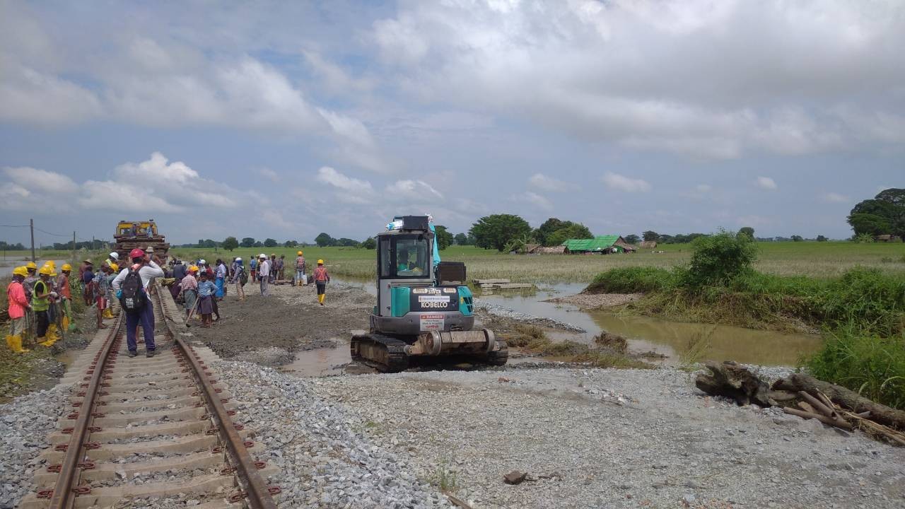 ယနေ့နံနက်ပိုင်းတွင် ပဲခူးမြစ်ရေပြန်လည်ကျဆင်းမှုကြောင့် ရေကြီးရေလျှံမှု ဖြစ်ပေါ်ခဲ့သည့် လူနေရပ်ကွက်များနှင့် ကျေးရွာများ၊ လမ်းများ၌ ရေပြန်လည်ကျဆင်း၍ ပုံမှန်အတိုင်းသွားလာရောင်းဝယ်မှုများ ပြုလုပ်နိုင်ပြီဖြစ်ကြောင်း၊ ရထားစီးခရီးသွားပြည်သူများ အဆင်ပြေစွာသွားလာနိုင်ရေးအတွက် ရထားခရီးစဉ်များ ပုံမှန်ပြန်လည်ပြေးဆွဲနိုင်ရေး ရေဖုံးလွှမ်းခဲ့သည့် ရထားလမ်းပိုင်းများအား မြန်မာ့မီးရထားမှ တာဝန်ရှိသူများက ရထားသံလမ်းများ၏ ကြံ့ခိုင်မှုအခြေအနေများအား စစ်ဆေး၍ လိုအပ်သည့် ပြန်လည်ပြင်ဆင်ရေးလုပ်ငန်းများ ဆောင်ရွက်လျက်ရှိကြောင်း သတင်းရရှိသည်။