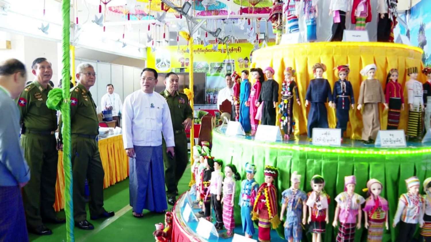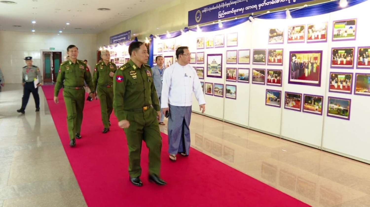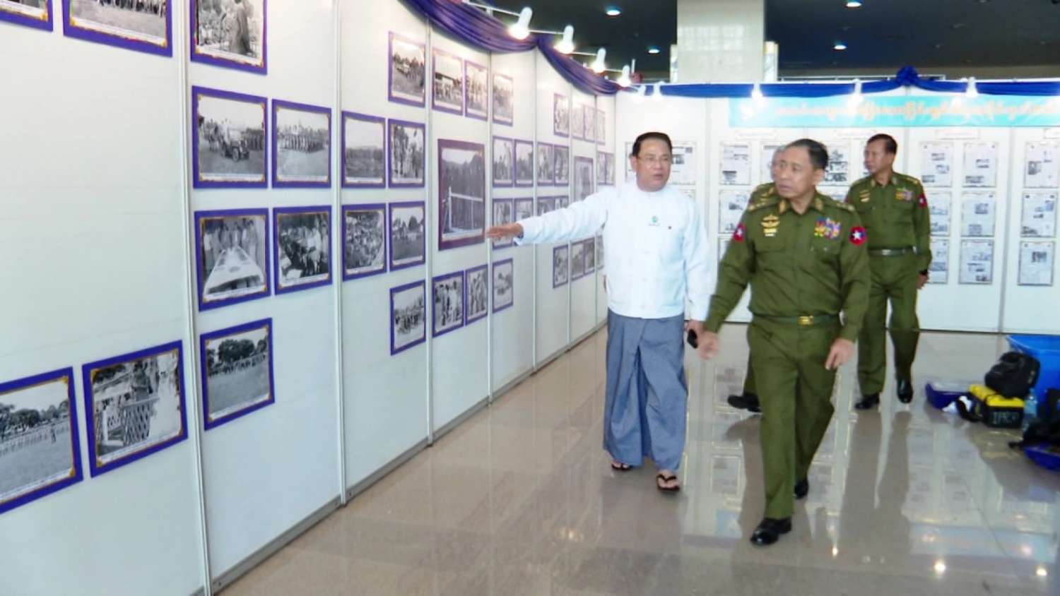 ထို့နောက် MICC-2 Lobby တွင် ခင်းကျင်းပြသမည့် နယ်စပ်ရေးရာဝန်ကြီးဌာနပြခန်း၊ တိုင်းရင်းသားလူမျိုးများရေးရာဝန်ကြီးဌာနပြခန်းနှင့် ပြန်ကြားရေးဝန်ကြီးဌာန ပြခန်းများဖြစ်ကြသည့် သတင်းစာများကပြောသော ငြိမ်းချမ်းရေးသမိုင်းမှတ်တမ်း၊ မြန်မာ့အသံနှင့်ရုပ်မြင်သံကြား၏ တိုင်းရင်းသားလူမျိုးများရုပ်သံလိုင်းနှင့် မြန်မာ့အသံရေဒီယိုတို့မှ တိုင်းရင်းသားဘာသာများဖြင့် ထုတ်လွှင့်မှုသရုပ်ပြခန်းတို့ ပြင်ဆင်ဆောင်ရွက်နေမှုများကို လှည့်လည်ကြည့်ရှု စစ်ဆေးပြီး လိုအပ်သည်များ မှာကြားသည်။