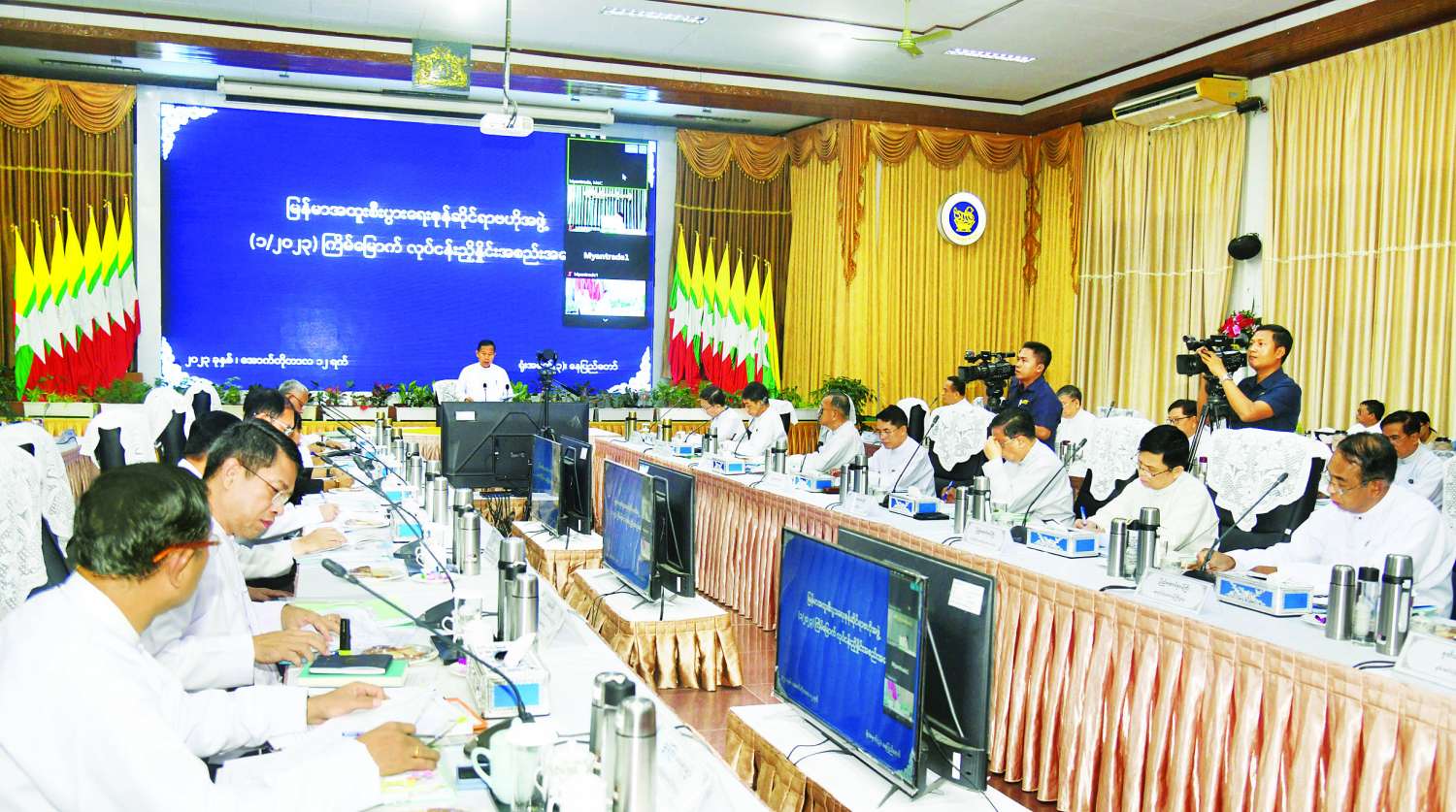 ထို့နောက် ပြည်ထောင်စုဝန်ကြီးများဖြစ်ကြသည့် ဗိုလ်ချုပ်ကြီးမြထွန်းဦး၊ ဦးဝင်းရှိန်၊ ဦးအောင်နိုင်ဦး၊ ဦးကိုကိုလှိုင်၊ ဒေါက်တာကံဇော်၊ ဒေါက်တာသီတာဦး၊ ဦးမင်းနောင်၊ ဦးခင်မောင်ရီ၊ ဒေါက်တာ ချာလီသန်း၊ ဦးမြင့်ကြိုင်၊ ဦးမြင့်နောင်၊ ဦးထွန်းအုံနှင့် ဦးမျိုးသန့်၊ တက်ရောက်လာကြသည့် တိုင်းဒေသကြီး/ ပြည်နယ်ဝန်ကြီးချုပ်များ၊ စွမ်းအင်ဝန်ကြီးဌာန ဒုတိယဝန်ကြီး ဦးသန့်စင်နှင့် အထူးစီးပွားရေးဇုန်ဥက္ကဋ္ဌများက အကြံပြုချက်များနှင့် အထူးစီးပွားရေးဇုန်များအလိုက် လုပ်ငန်းဆောင်ရွက်နေမှုဆိုင်ရာကိစ္စများနှင့် ပတ်သက်၍ သက်ဆိုင်ရာကဏ္ဍများအလိုက် ဆွေးနွေးတင်ပြကြသည်။