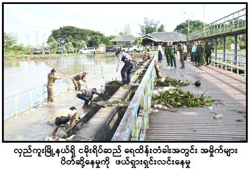 ရန်ကုန်တိုင်းဒေသကြီး၊ လှည်းကူးမြို့နယ်အတွင်း မိုးသည်းထန်စွာရွာသွန်းမှုကြောင့် ငမိုးရိပ်ချောင်းရေမြင့်တက်မှုဖြစ်ပေါ်ခဲ့ပြီး ငမိုးရိပ်ဆည်ရေထိန်းတံခါးအတွင်း အမှိုက်များ ပိတ်ဆို့မှုဖြစ်ပေါ်လျက်ရှိရာ အောက်တိုဘာ ၁၂ ရက်တွင် ရန်ကုန်တိုင်းစစ်ဌာနချုပ်မှ နယ်မြေခံတပ်မတော်သားများ၊ မြန်မာနိုင်ငံရဲတပ်ဖွဲ့ဝင်များ၊ ဌာနဆိုင်ရာဝန်ထမ်းများနှင့် ဒေသခံပြည်သူများက ပိတ်ဆို့လျက်ရှိသော အမှိုက်များအား ရှင်းလင်း ဖယ်ရှားပေးခြင်းများကို စုပေါင်းဆောင်ရွက်ပေးကြသည်။
