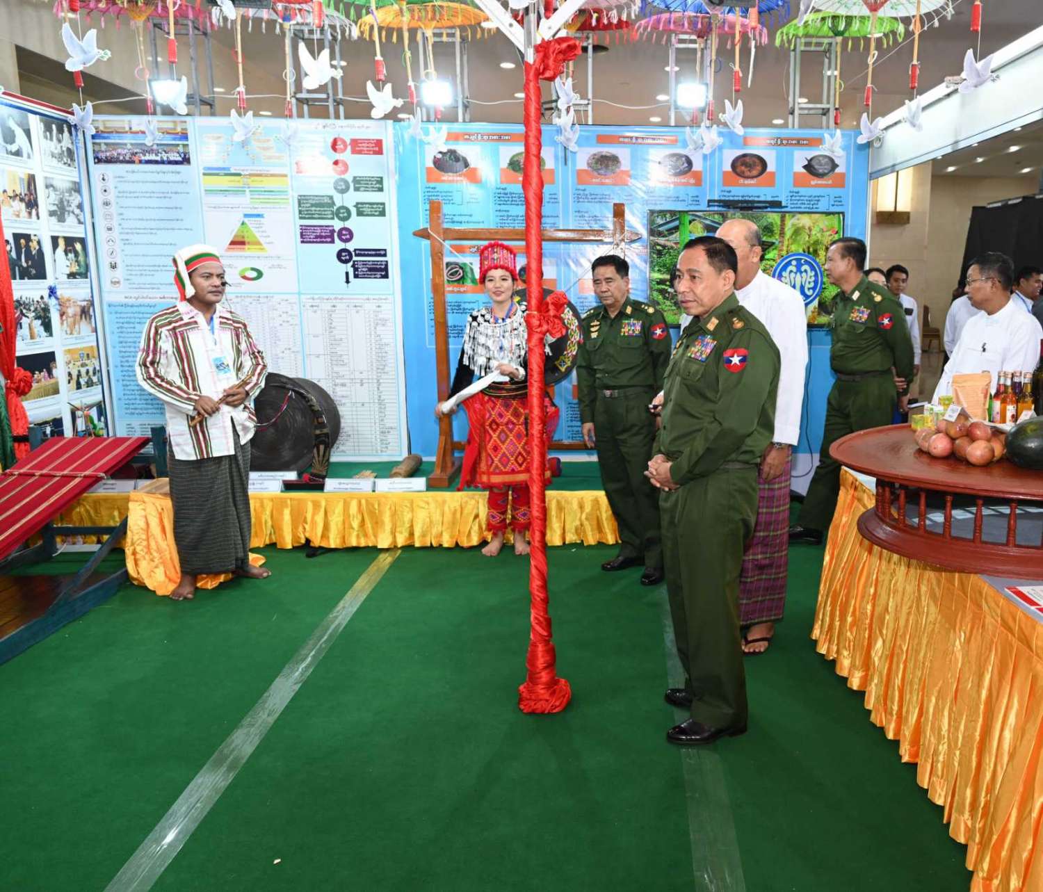 တစ်နိုင်ငံလုံး ပစ်ခတ်တိုက်ခိုက်မှု ရပ်စဲရေး သဘောတူစာချုပ် (NCA) (၈) နှစ်မြောက် နှစ်ပတ်လည်နေ့အခမ်းအနား ကျင်းပရေးဦးစီးကော်မတီဥက္ကဋ္ဌ ပြည်ထောင်စုဝန်ကြီးနှင့်အဖွဲ့သည် အခမ်းအနားဖွင့်လှစ်မှု၊ နယ်စပ်ရေးရာဝန်ကြီးဌာန ၊ ပြန်ကြားရေးဝန်ကြီးဌာနနှင့် တိုင်းရင်းသားလူမျိုးများရေးရာဝန်ကြီးဌာနတို့မှ ပြခန်းများခင်းကျင်းပြသထားမှု၊ တိုင်းဒေသကြီးနှင့် ပြည်နယ်များမှ တိုင်းရင်းသားရိုးရာယဉ်ကျေးမှုအဖွဲ့များ၊ ပြန်ကြားရေးဝန်ကြီးဌာနနှင့် သာသနာရေးနှင့်ယဉ်ကျေးမှုဝန်ကြီးဌာနတို့မှ အကအဖွဲ့များ ကပြဖျော်ဖြေမှုများ အပါအဝင် နှစ်ပတ်လည်နေ့အခမ်းအနား အစီအစဉ်အလိုက်ဝတ်စုံပြည့် အစမ်းလေ့ကျင့် ဆောင်ရွက်နေမှုများကို ကြည့်ရှုစစ်ဆေးပြီး လိုအပ်သည်များကို တာဝန်ရှိသူများနှင့် ပေါင်းစပ်ညှိနှိုင်းဆောင်ရွက်ပေးသည်။