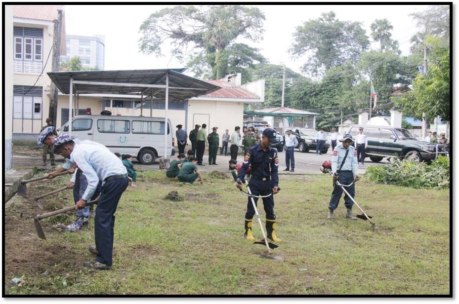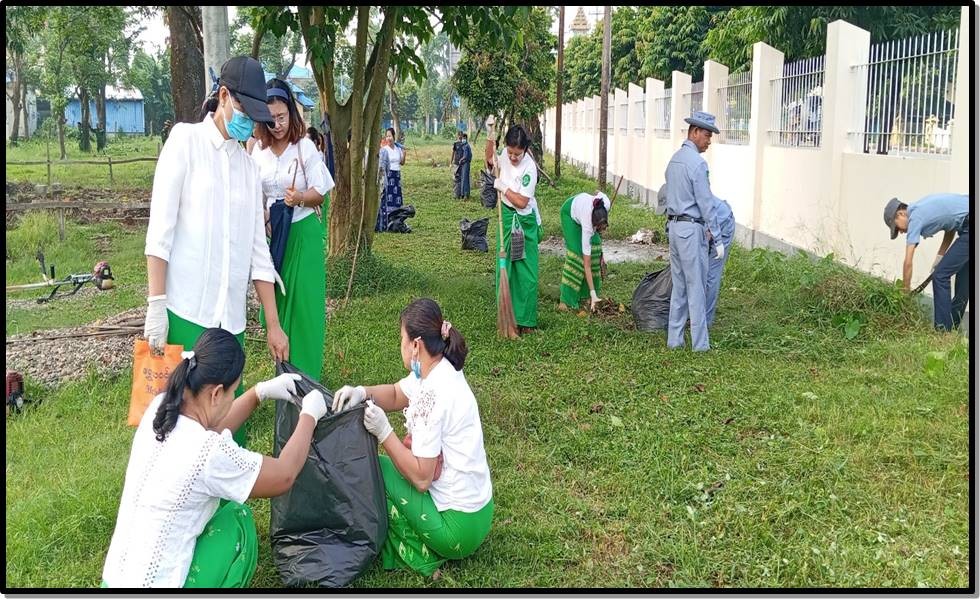ယခုအချိန်အခါတွင် နိုင်ငံတော်စီမံအုပ်ချုပ်ရေးကောင်စီ၏ ဦးဆောင်မှုနှင့် အတူနိုင်ငံတစ်ဝန်းလုံး၌ တပ်မတော်သားများ၊ ဌာနဆိုင်အဖွဲ့အစည်းများ၊ ဒေသခံပြည်သူအားလုံးတို့က နိုင်ငံတော်ဖွံ့ဖြိုးတိုးတက်ရေးလုပ်ငန်းများကို ညီညီညွတ်ညွတ်ဖြင့် ဆောင်ရွက်လျက်ရှိကြပြီး အပတ်စဉ် စနေနေ့တိုင်းတွင်လည်း မိမိတို့၏ မြို့၊ ရွာများရှိ ဆေးရုံ၊ ဆေးခန်းများ၌ ခြင်၊ ယင်၊ ပေါက်ဖွားမှုမရှိစေရေးနှင့် ဆေးရုံတက်ရောက် ကုသနေသော လူနာများအား လေကောင်းလေသန့်ရရှိစေရန် ချုံနွယ်၊ ပေါင်းမြက်များ ခုတ်ထွင်ရှင်းလင်းခြင်းများကို အားတက်သရော ဆောင်ရွက်လျက်ရှိသည်။