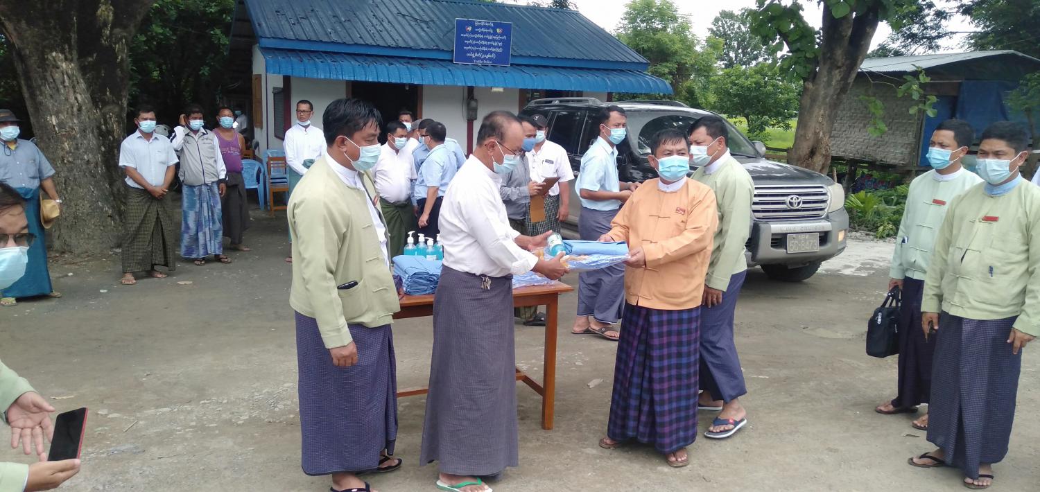 ဆက်လက်ပြီး တိုင်းဒေသကြီး ဝန်ကြီးချုပ်မှ PPE ဝတ်စုံ ၁၂ စုံ၊ Hand Gel ၁၀ ဘူး၊ Face Cover ၅ ခု ပေးအပ်ခဲ့ရာ ရတနာပုံ အုပ်ချုပ်ရေးမှူး ဦးမြသိန်းမှ လက်ခံခဲ့ကြောင်းနှင့် ဥသျှစ်ပင်မြို့ ကျန်းမာရေးမှူး ဦးရဲနိုင်၊ ပန်းတောင်းမြို့နယ် စည်ပင်ဥက္ကဋ္ဌ ဦးမြတ်မိုးကျော်၊ SAE ဦးကျော်နိုင်ထွန်းနှင့် ဌာနဆိုင်ရာ ဝန်ထမ်းများ၊ ရတနာပုံ ရပ်ကွက်အုပ်ချုပ်ရေးမှူး ဦးမြသိန်းနှင့် ရပ်မိရပ်ဖများ၊ စုစုပေါင်းအင်အား (၄၀)ဦးခန့် တက်ရောက်ခဲ့ကြောင်း သိရသည်။