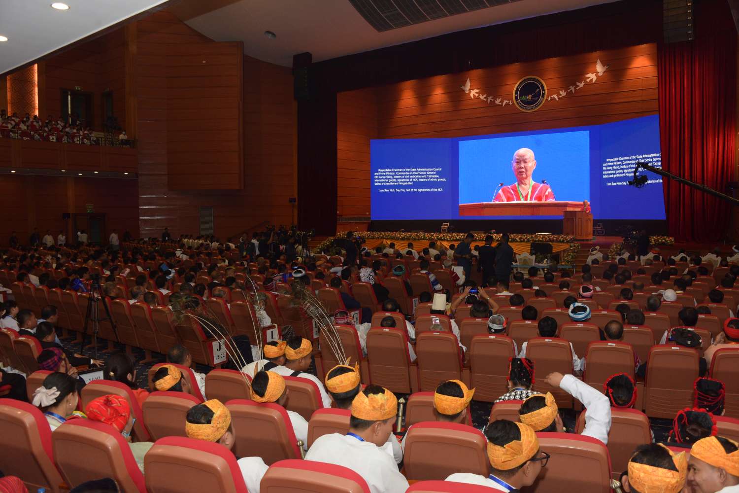 ၈။ နိဂုံးချုပ်အနေနဲ့ မိမိတို့နိုင်ငံဟာ လူမျိုးပေါင်းစုံနေထိုင်တဲ့ တိုင်းပြည်ဖြစ်သည့်အလျှောက် လူမျိုးချင်းမတူသော်လည်း ငြိမ်းချမ်းစွာအတူတကွ နေထိုင်နိုင်ရေးအတွက် ရှေးရှုရန်လိုနေပါတယ်။ မိမိတို့ရဲ့ သက်တမ်းတစ်လျှောက်မှာ ခါးသီးစွာတွေ့ကြုံခံစားလာခဲ့ကြရတဲ့ လက်နက်ကိုင် ပဋိပက္ခကို အမြန်ဆုံးချုပ်ငြိမ်းစေပြီး အနာဂတ်မျိုးဆက်သစ် ပြည်သူပြည်သား လူငယ်လူရွယ်များအတွက် "ငြိမ်းချမ်းရေး" ဆိုတဲ့ အမွေအနှစ်ကို ချန်ရစ်ထားနိုင်ဖို့၊ တရားမျှတမှုနဲ့ ဂုဏ်သိက္ခာရှိမှုတို့အပေါ်အခြေခံတဲ့ တာဝန်ယူမှု၊ တာဝန်ခံမှု၊ ပွင့်လင်းမြင်သာမှုရှိမယ့် ငြိမ်းချမ်းရေးကို ဖော်ဆောင်သွားကြဖို့နဲ့ ညှိနှိုင်းဆွေးနွေးပွဲတွေကနေ လက်ရှိနိုင်ငံရေး အကျပ်အတည်းကိုကျော်လွှားကာ ဒီမိုကရေစီနဲ့ ဖက်ဒရယ်စံနစ်ကိုအခြေခံတဲ့ ပြည်ထောင်စုကိုတည်ဆောက်နိုင်ရေး မဆုတ်မနစ် ကြိုးပမ်းကြပါစို့လို့ ဒီကနေ့ အခမ်းအနားကို ဂုဏ်ပြုရင်း နိဂုံးချုပ်အပ်ပါတယ်။