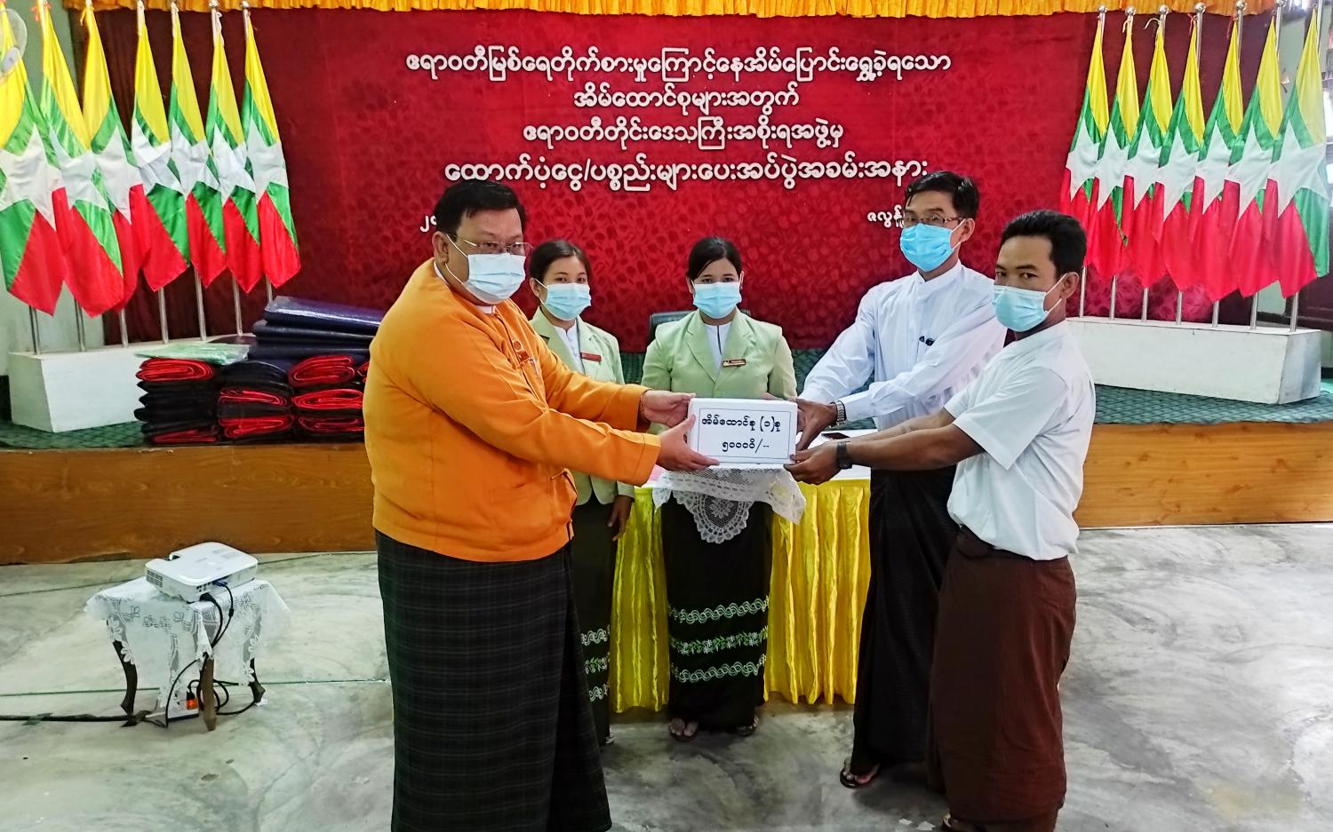 အခမ်းအနားတွင် ဧရာဝတီတိုင်းဒေသကြီးအစိုးရအဖွဲ့ဝန်ကြီးချုပ် ဦးလှမိုးအောင်က ထောက်ပံငွေ ပေးအပ်ရသည့် အကြောင်းနှင့်ပတ်သတ်၍ အဖွင့်အမှာစကား ပြောကြားခဲ့ပြီး ကြာအင်း ကျေးရွာအုပ်စုနှင့် ညောင်ပင်သာကျေးရွာအုပ်စုတို့တွင် ဧရာဝတီမြစ်ရေ တိုက်စားမှုကြောင့် နေအိမ်ပြောင်းရွှေ့ခဲ့ရသော အိမ်ထောင်စု (၃၃)စုအတွက် အိမ်ထောင်စု(၁)စုလျှင် (၅၀၀၀၀) နူန်းဖြင့် စုစုပေါင်း ငွေကျပ်သိန်း(၁၆၅၀၀၀၀)နှင့် အိမ်ထောင်စု(၁)စုလျှင် ၂၀ ပေ၊ ၄၀ ပေ တာပေါ် လင်မိုးကာစ (၁)စ၊ အိမ်ထောင်စု (၃၃)စုအတွက် စုစုပေါင်း တာပေါ်လင်မိုးကာစ (၃၃)စ ထောက်ပံ့ပေးအပ်ခဲ့သည်။