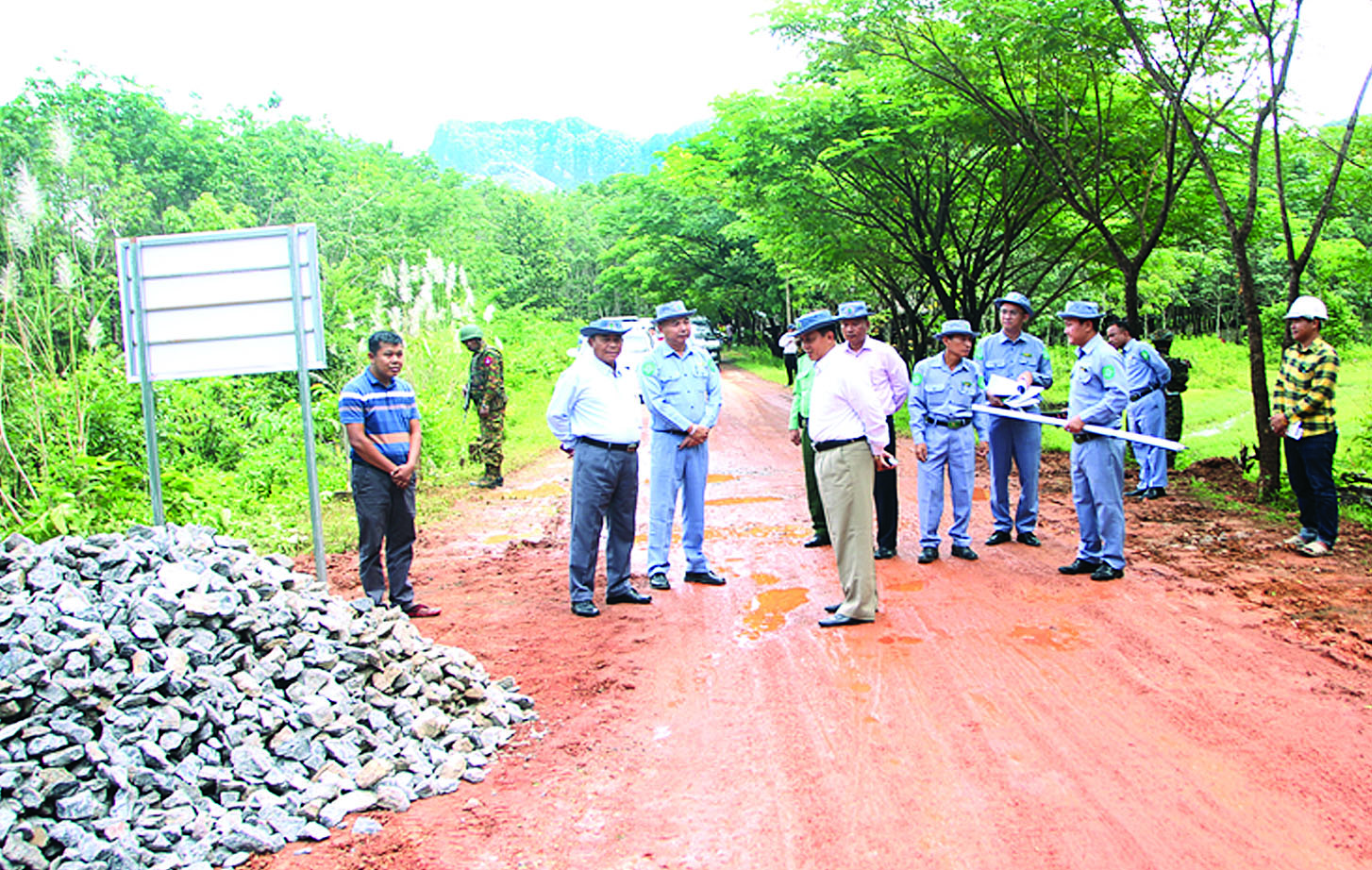 မွန်းလွဲပိုင်းတွင် ဒုတိယဝန်ကြီးနှင့်အဖွဲ့သည် ၂၀၂၃-၂၀၂၄ ဘဏ္ဍာရေးနှစ် ပြည်နယ်ရန်ပုံငွေဖြင့် လှိုင်းဘွဲမြို့နယ် မြိုင်ကြီးငူ- မဲသဝေါ ၃၁ မိုင် လမ်းပေါ်တွင် ဆောင်ရွက်လျက်ရှိသည့် ကတ္တရာထပ်ပိုးလွှာခင်းခြင်း၊ ကျောက်စီရေမြောင်း၊ မြေထိန်းနံရံ၊ ကျောက်စီ မြေကာနံရံ တည်ဆောက်ခြင်း လုပ်ငန်းအား ကြည့်ရှုစစ်ဆေးပြီး လိုအပ်သည်များမှာကြားသည်။