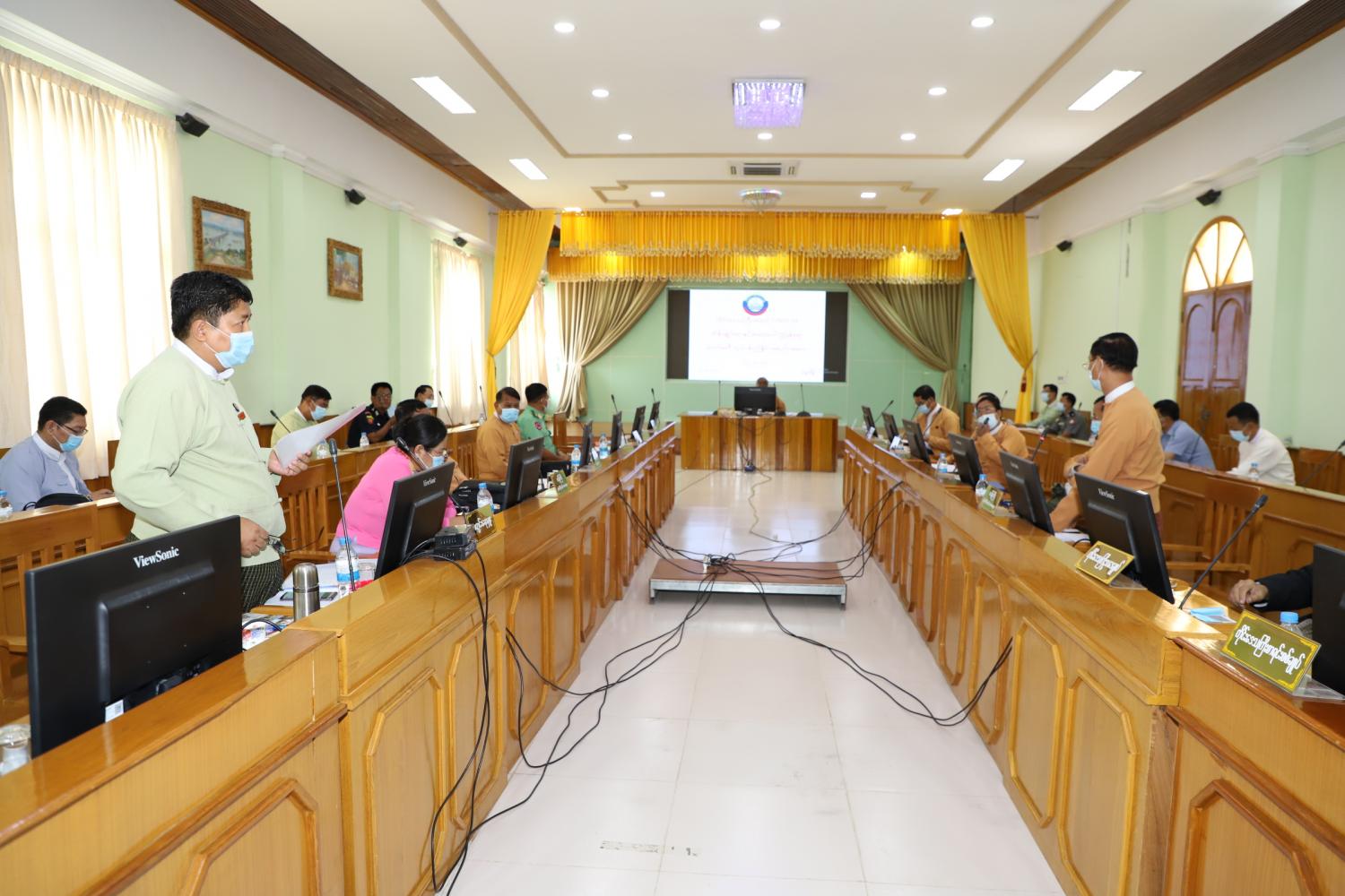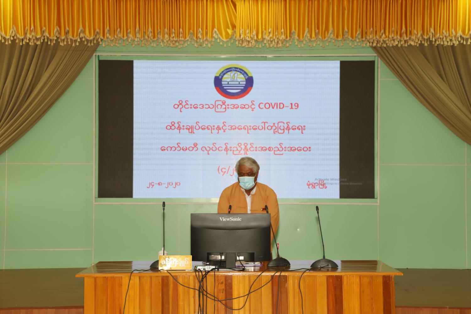 ရှေးဦးစွာ တိုင်းဒေသကြီးအဆင့် COVID-19 ထိန်းချုပ်ရေးနှင့် အရေးပေါ်တုံ့ပြန်ရေးကော်မတီဥက္ကဋ္ဌ တိုင်းဒေသကြီး ဝန်ကြီးချုပ် ဒေါက်တာမြင့်နိုင်က “ မိမိတို့တိုင်းဒေသကြီးအတွင်း COVID-ရောဂါ ထိန်းချုပ်ကာကွယ်ရေးနှင့် စပ်လျဉ်းပြီး ရှေ့လုပ်ငန်းများကို စဉ်ဆက်မပြတ် အထူးအလေးထားဆောင်ရွက်နိုင်အောင် လုပ်ငန်းကဏ္ဍများအလိုက် အားနည်းချက်၊ အားသာချက်များကို ပွင့်ပွင့် လင်းလင်း ဆွေးနွေးကြစေကြောင်း လတ်တလောဖြစ်ပွားလျက်ရှိသော COVID -19 ရောဂါ ကာကွယ်ထိန်းချုပ်နိုင်ရေးအတွက် လိုအပ်သောအစီအမံများနှင့် မူဝါဒများချမှတ်နိုင်ရေးကို အားလုံးကြိုးစားလုပ်ကိုင်ဆောင်ရွက်ကြစေကြာင်း ” အမှာစကား ပြောကြားသည်။
