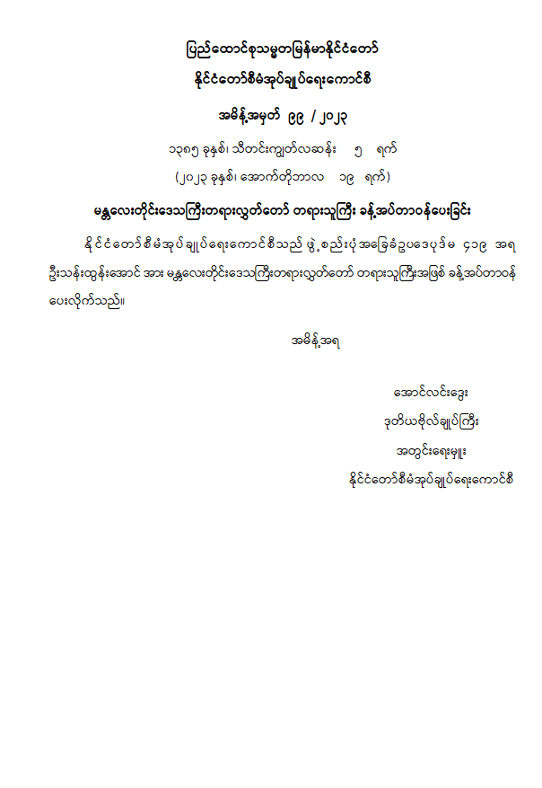 ဝန်ကြီးဌာန ကြေညာချက်များ