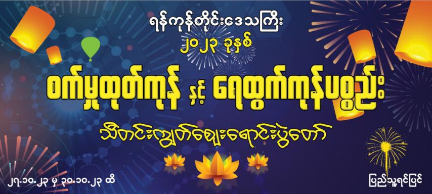 ရန်ကုန်တိုင်းဒေသကြီး ၂၀၂၃ ခုနှစ် စက်မှုထုတ်ကုန်နှင့် ရေထွက်ကုန်ပစ္စည်း သီတင်းကျွတ် စျေးရောင်းပွဲတော်ကို အရောင်းဆိုင်ခန်းများဖြင့် အောက်တိုဘာလ (၂၇) ရက်မှ အောက်တိုဘာလ (၃၀)ရက်အထိ နံနက် (၈) နာရီမှ ည (၁၀) နာရီအထိ ရန်ကုန်မြို့၊ ဒဂုံမြို့နယ် ပြည့်သူ့ရင်ပြင်၌ စည်ကားသိုက်မြိုက်စွာ ကျင်းပမည်ဖြစ်သည်။